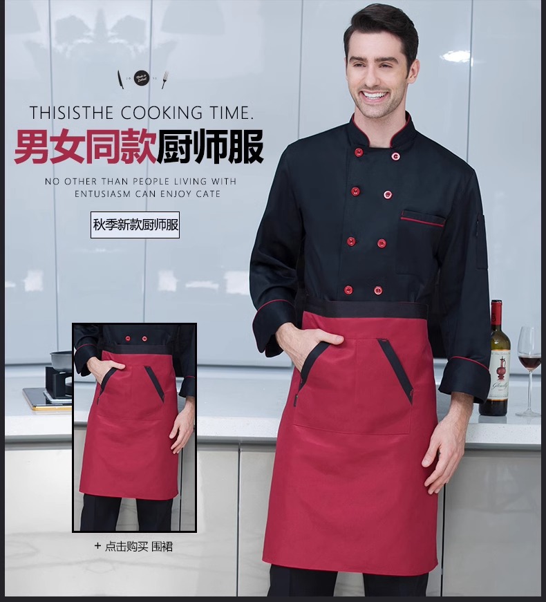 • 빨간색 검정색 테두리가 있는 긴 소매 + 앞치마