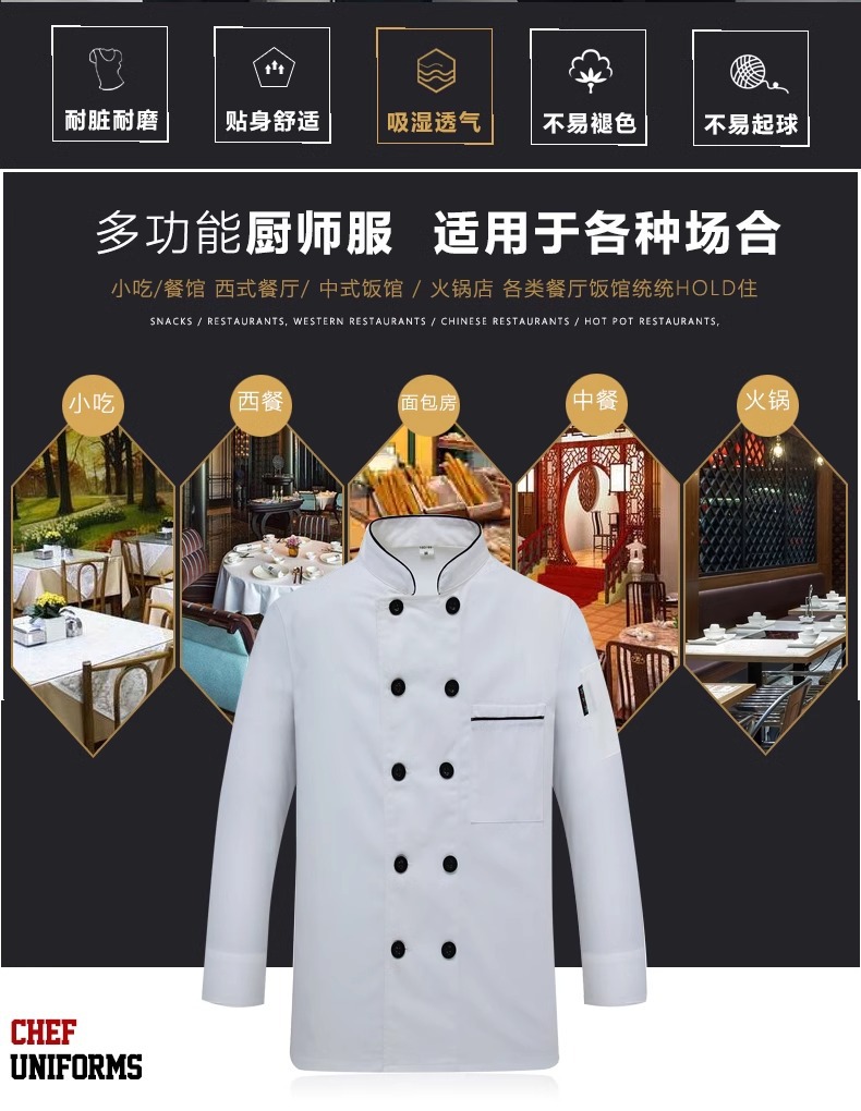 셰프 작업복 남성용 반팔 여름 호텔 케이터링 포스트 키친 웨스턴 레스토랑 셰프 옷 긴팔 크로스-테두리스토어 가기