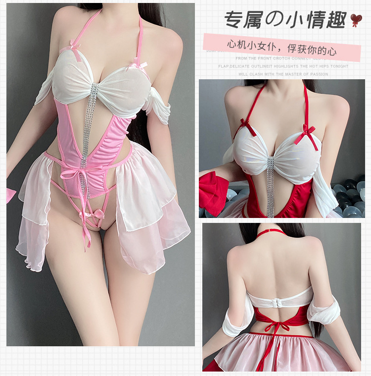 섹시한 메이드 원피스 성 란제리 여성 순수하게 유혹하고 싶어 데이트 로브 유니폼 침대 무료 잠옷 세트 2811