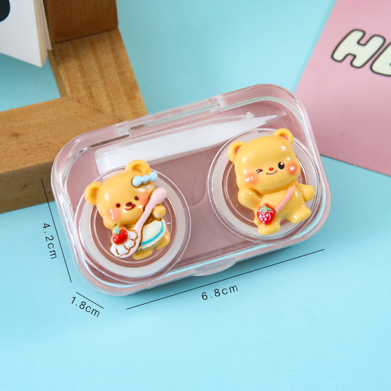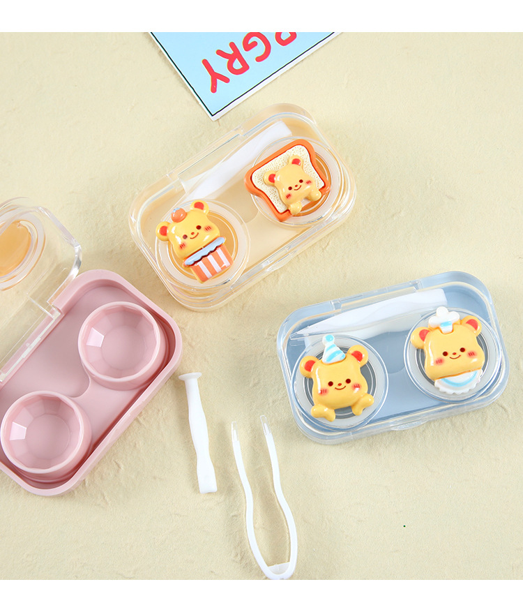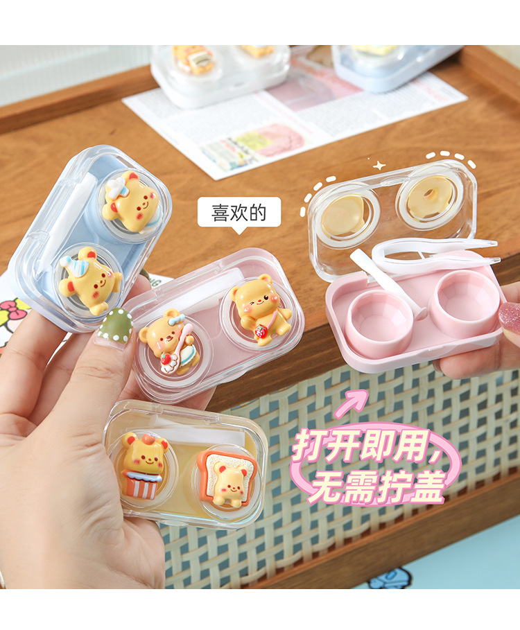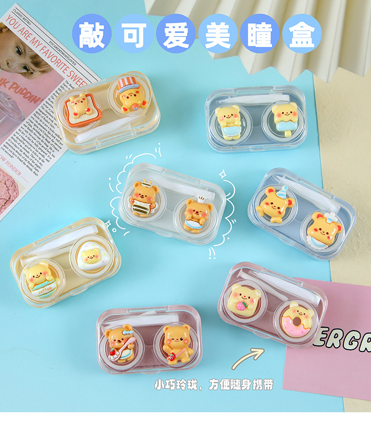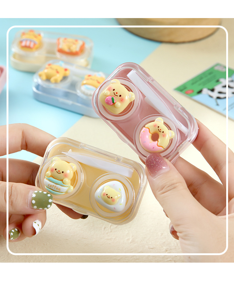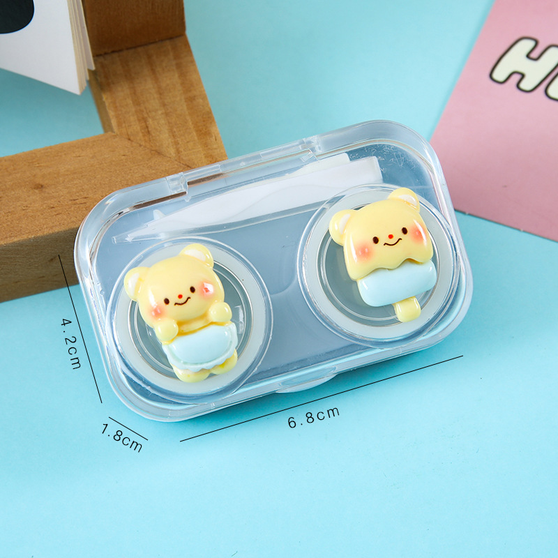 버터베어 콘택트렌즈 케이스 귀여운 만화 콘택트렌즈 케이스 미니 휴대용 인스 스타일 플라스틱 투명 이중 케이스스토어 가기