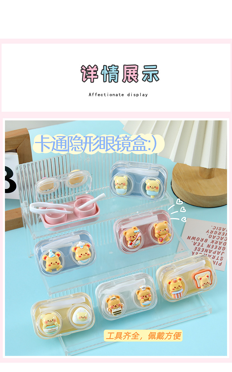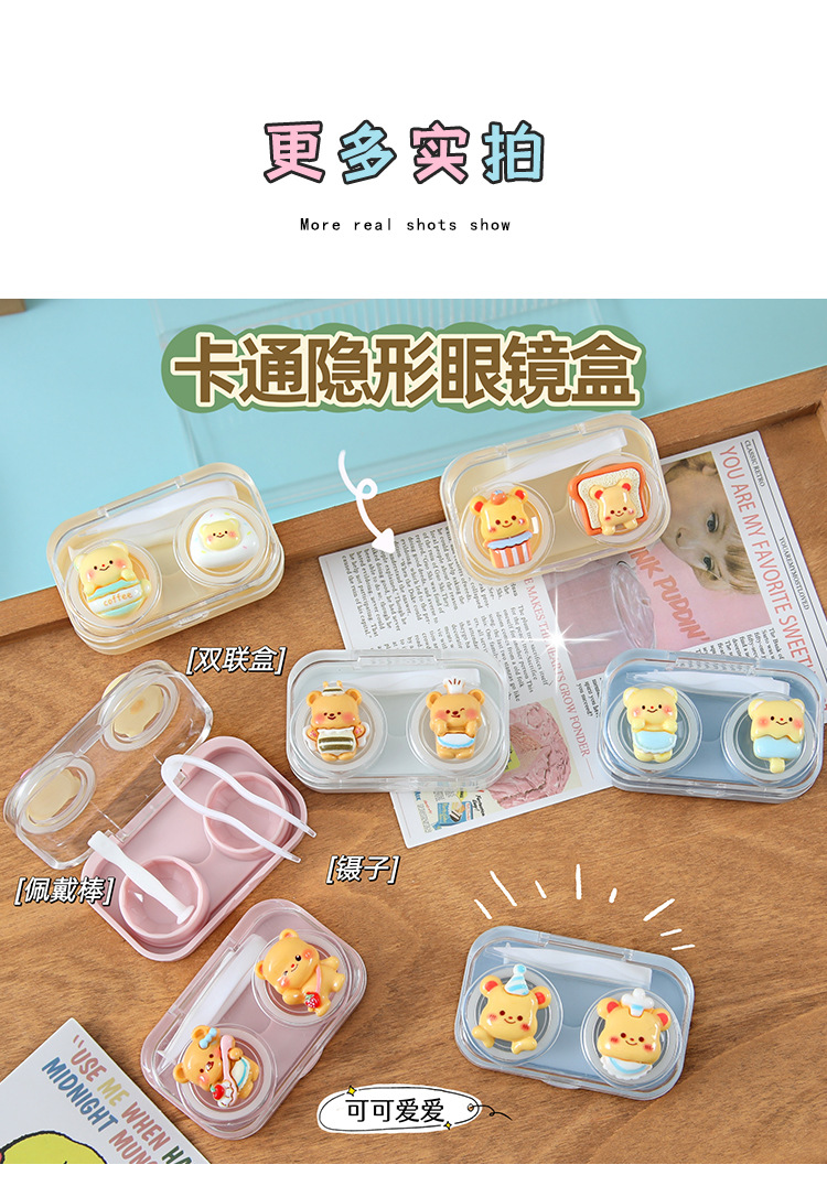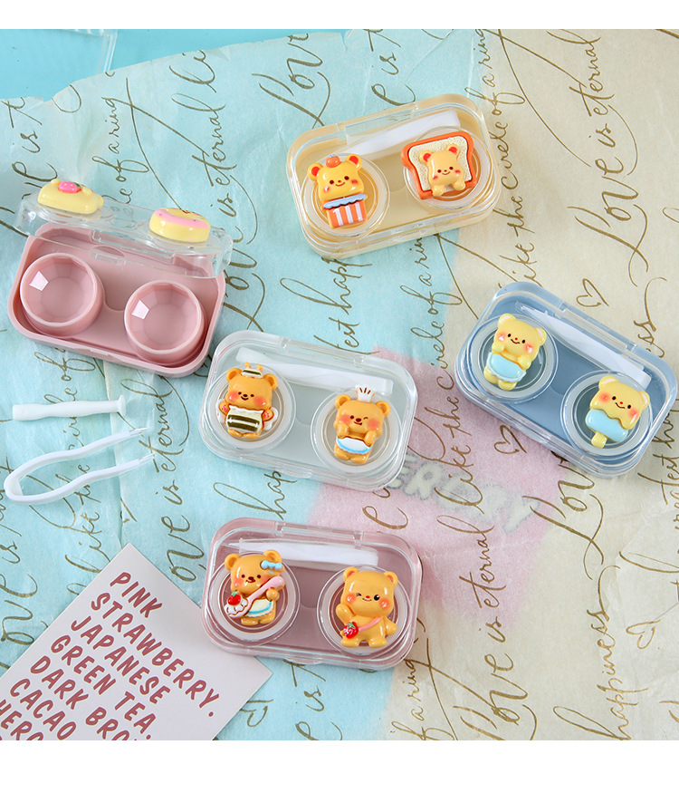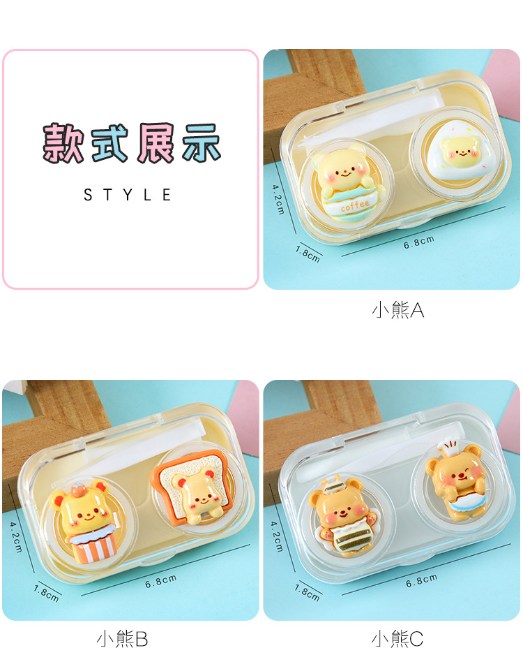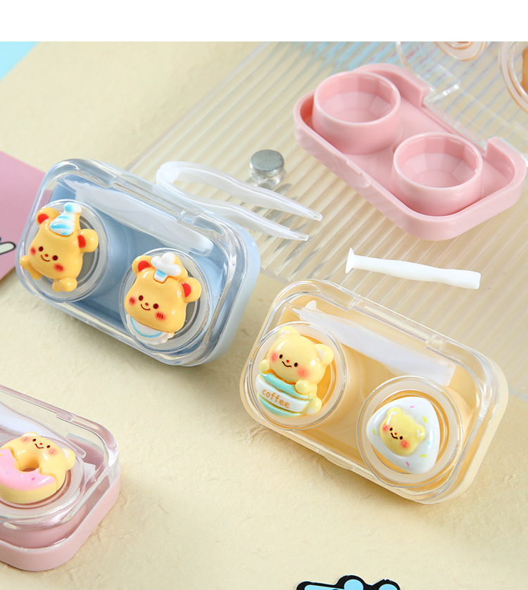 버터베어 콘택트렌즈 케이스 귀여운 만화 콘택트렌즈 케이스 미니 휴대용 인스 스타일 플라스틱 투명 이중 케이스스토어 가기