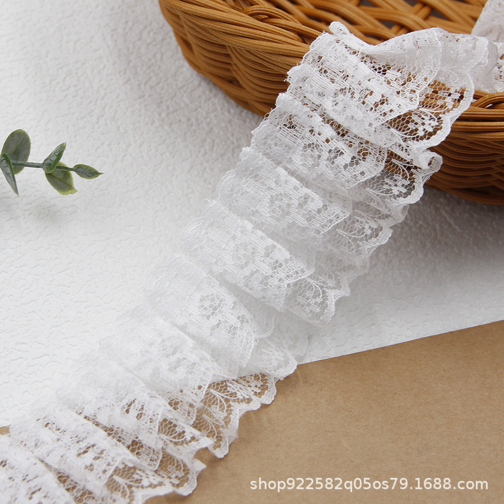 더블 화이트 레이스 주름 옷 칼라 커프 레이스 액세서리 수제 DIY 의류 장난감 스커트 장식