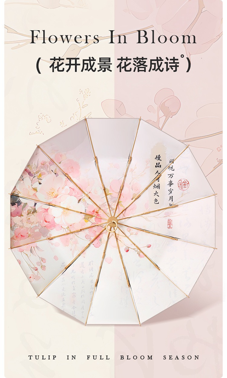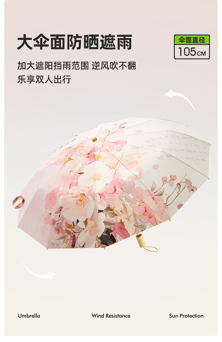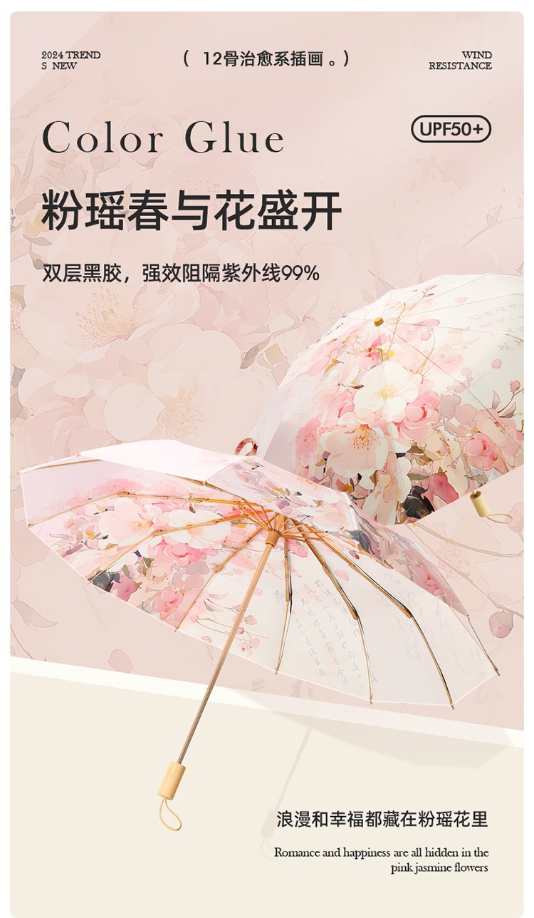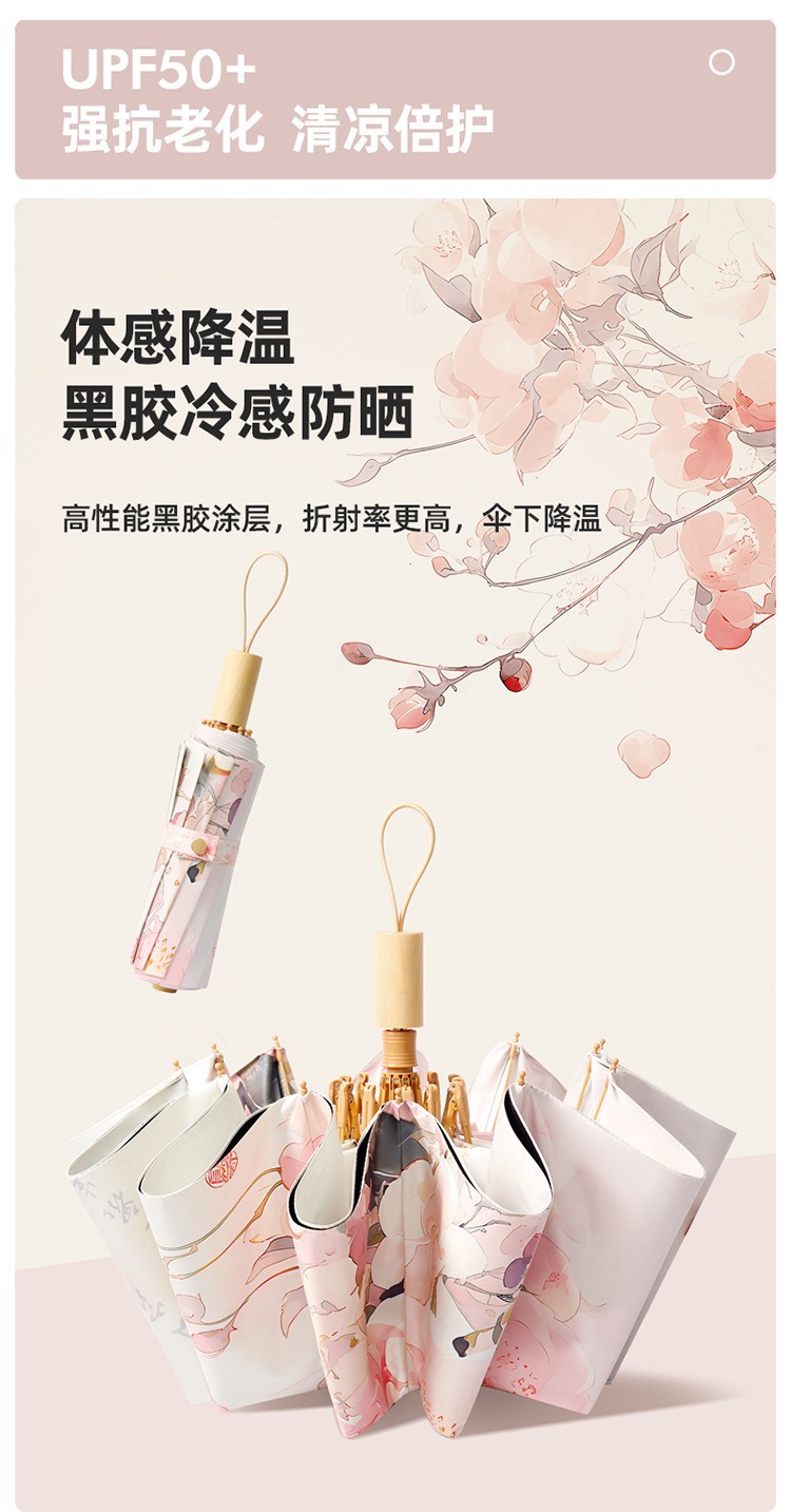 더블 레이어 더블 플라워 블랙 고무 선 스크린 및 비 듀얼 사용 우산 접이식 태양 우산 선 스크린 태양 우산 제조 업체 재고 도매스토어 가기