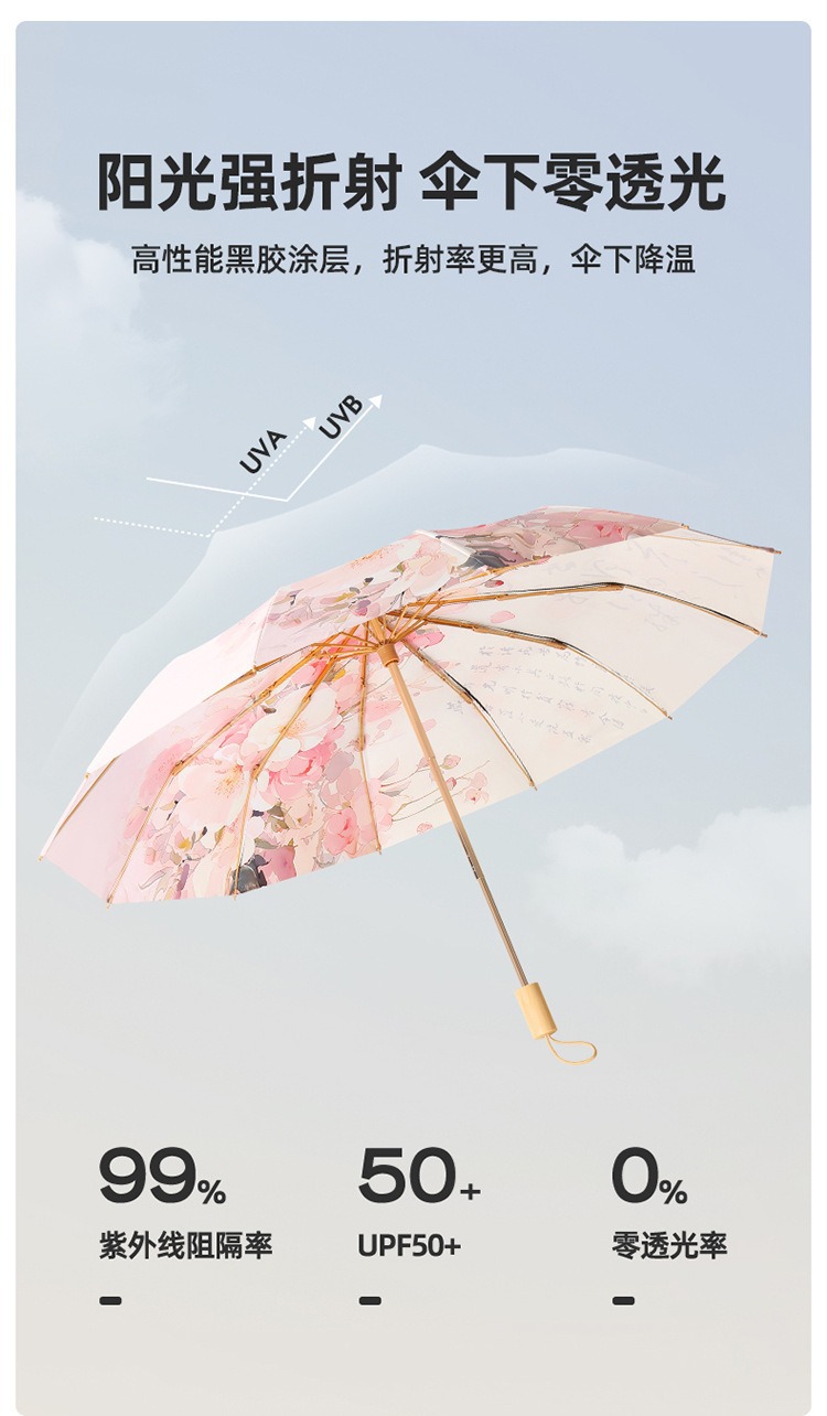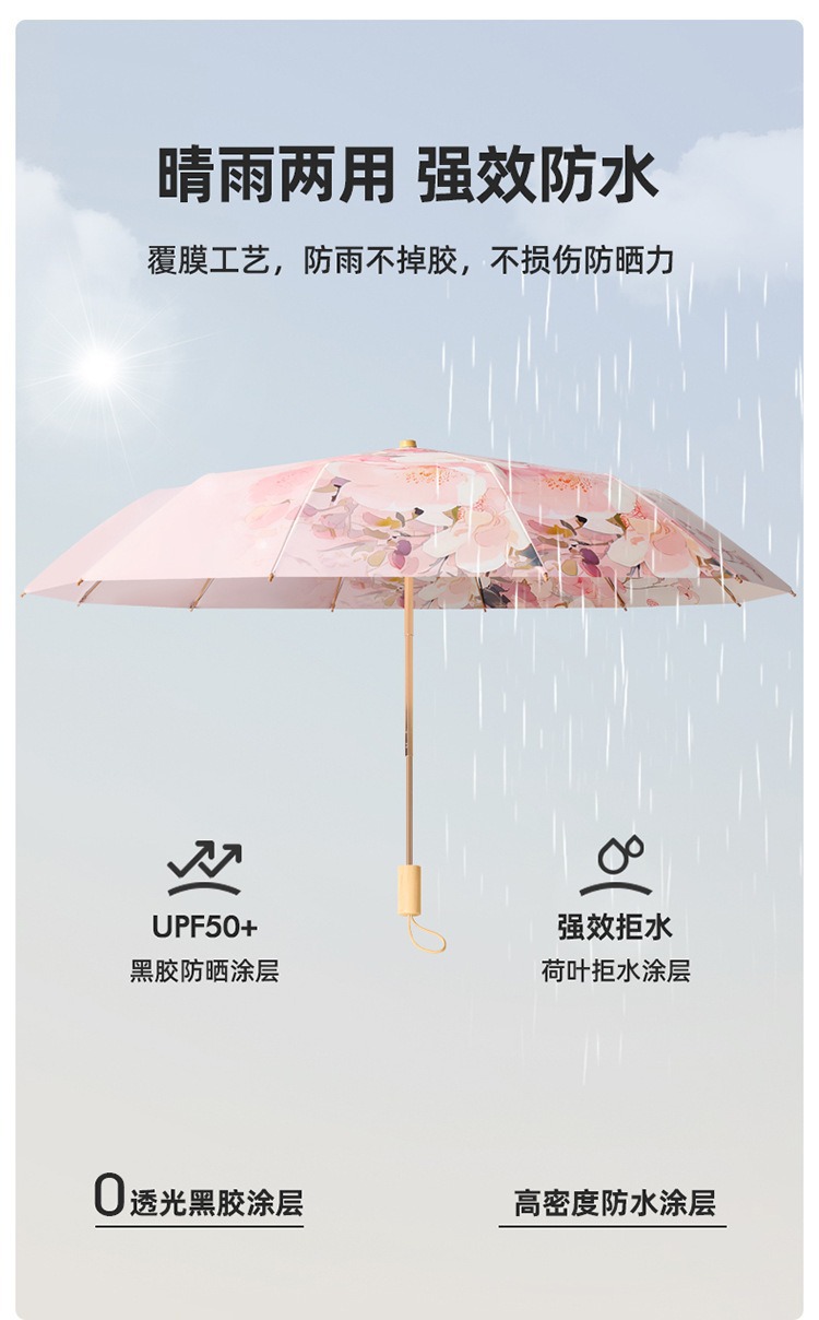 더블 레이어 더블 플라워 블랙 고무 선 스크린 및 비 듀얼 사용 우산 접이식 태양 우산 선 스크린 태양 우산 제조 업체 재고 도매