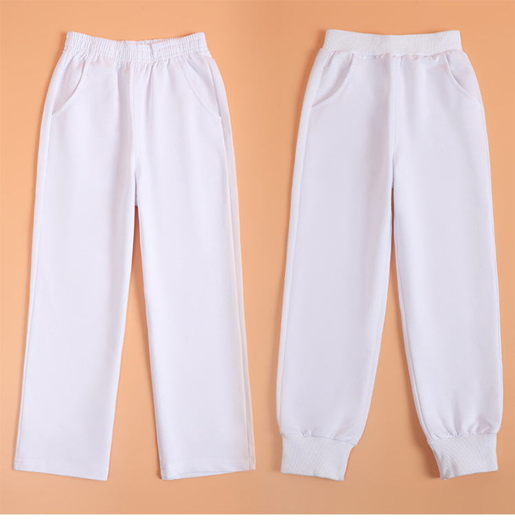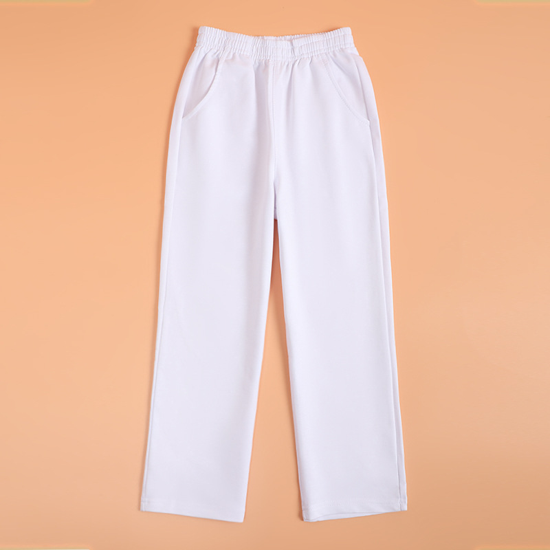 어린이 화이트 스포츠 바지 스트레이트 레그 허리 초등학교 및 중등 학교 학생의 4 시즌 공연 세트 바지스토어 가기