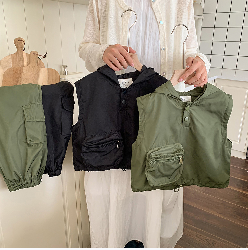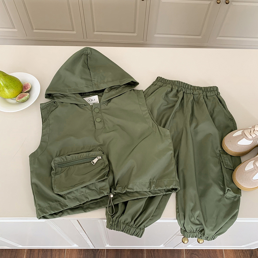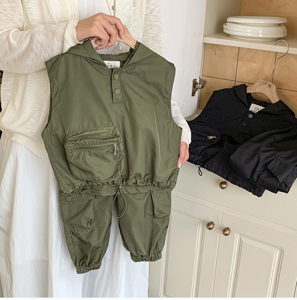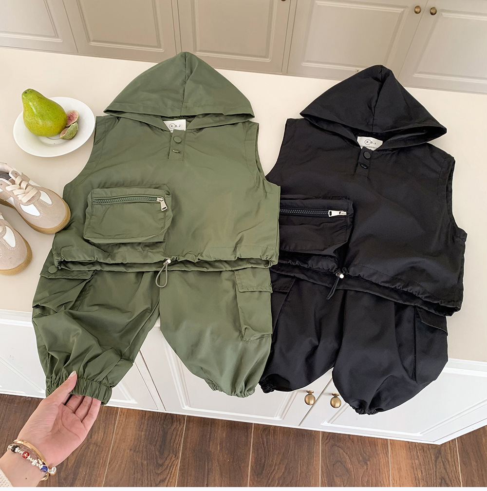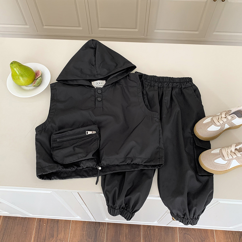 어린이 세트 2024 새 봄 · 가을 소년 세트 패션 맞춤형 한국 민소매 후드 어린이 세트