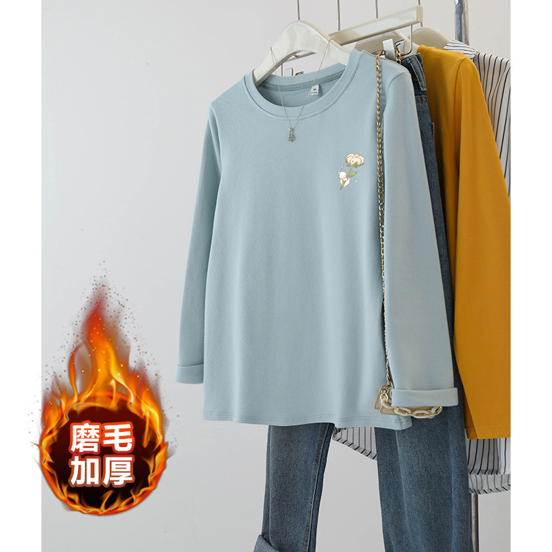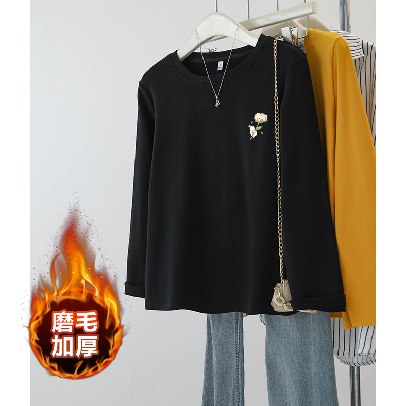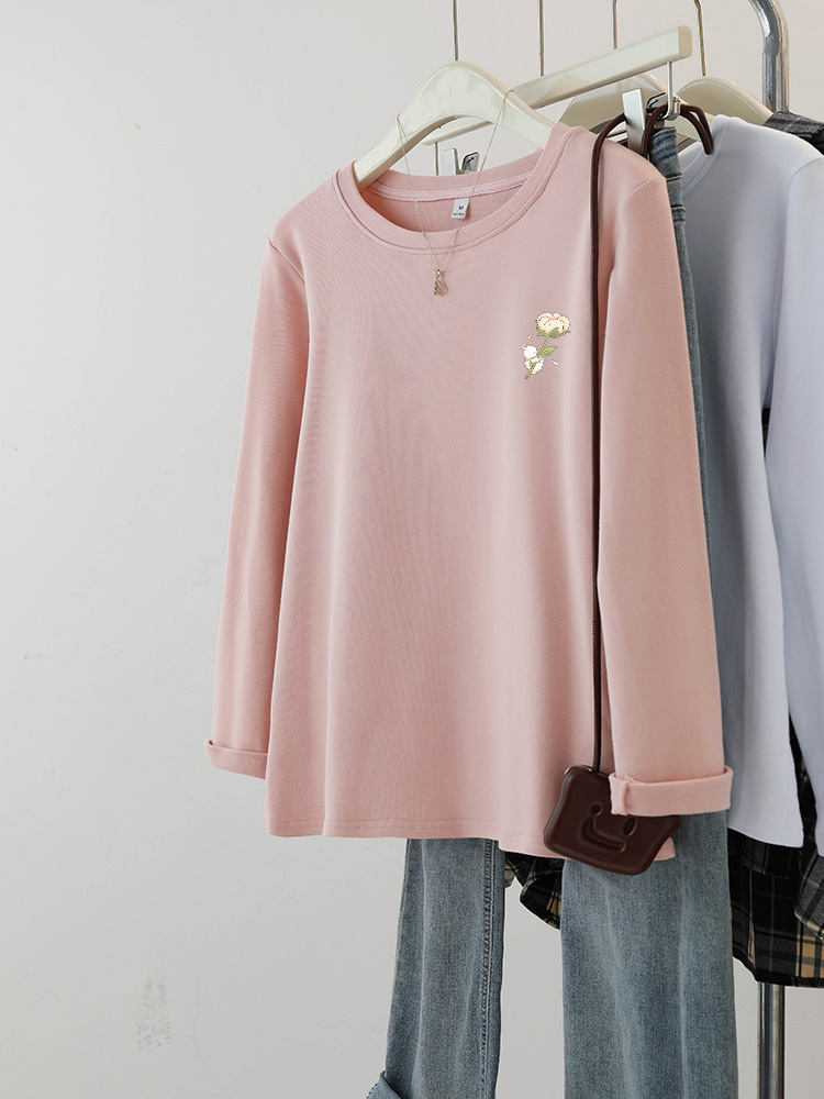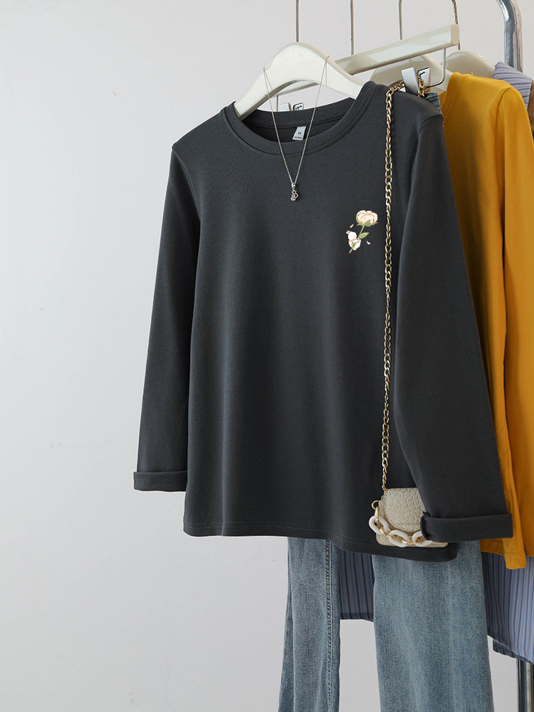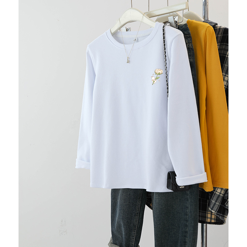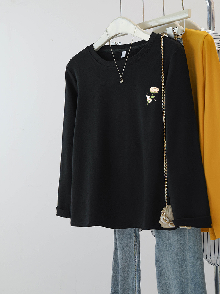 플러스 사이즈 여성의 봄과 가을 긴팔 티셔츠 통통한 소녀 슬리밍 디자인 센스 프린트 아메리칸 숄더 탑스토어 가기