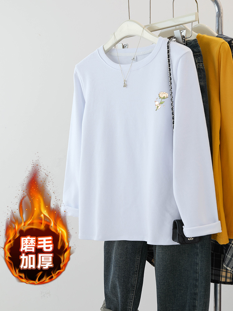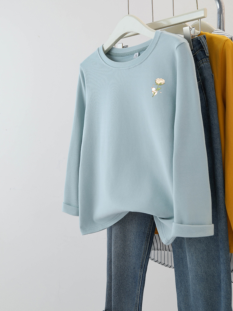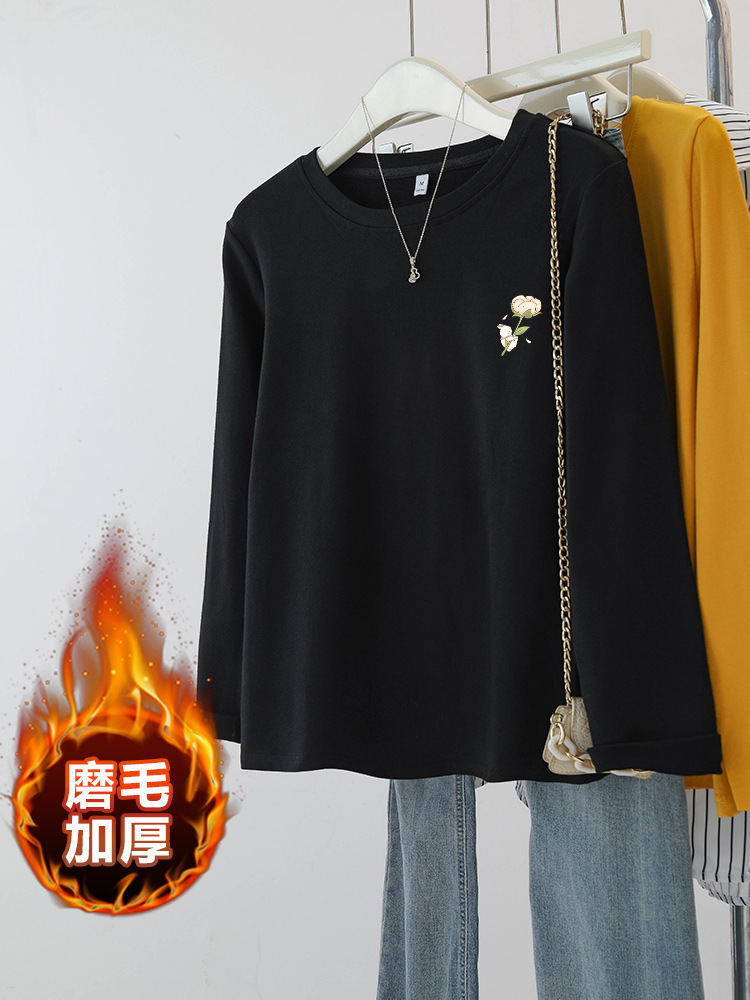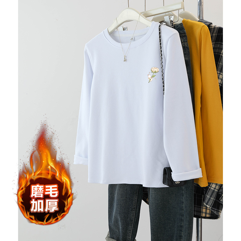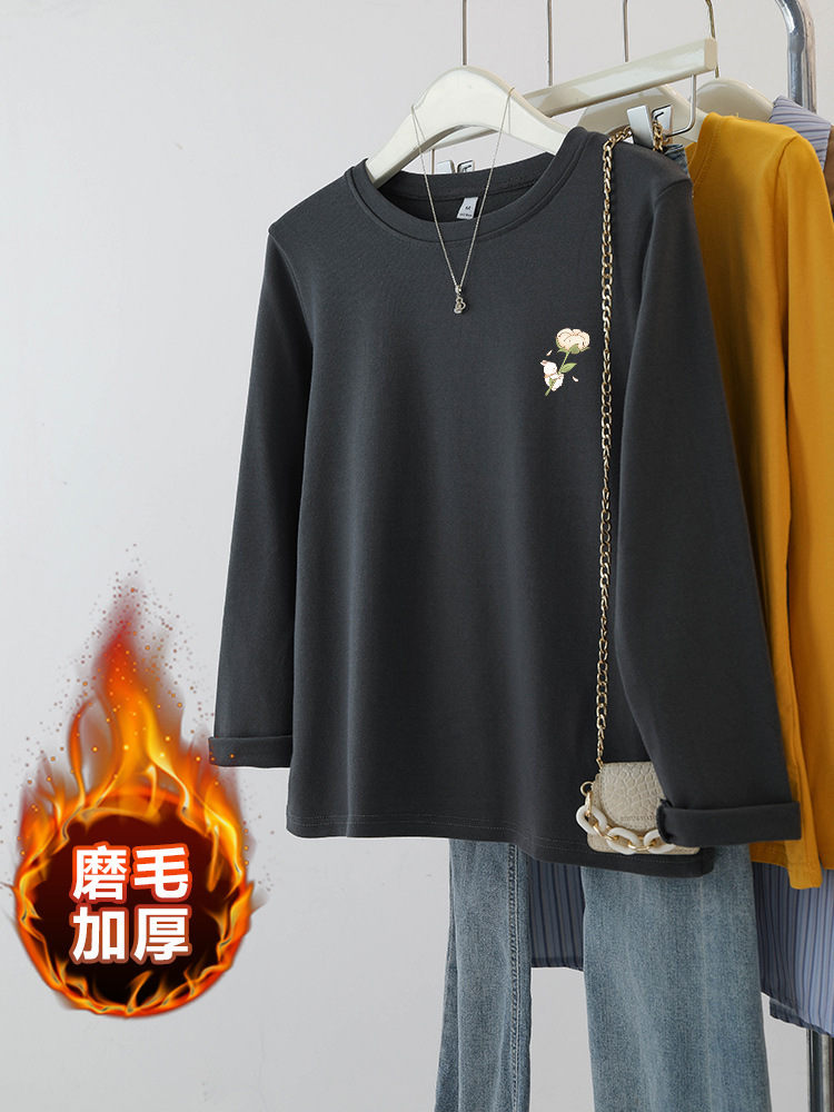 플러스 사이즈 여성의 봄과 가을 긴팔 티셔츠 통통한 소녀 슬리밍 디자인 센스 프린트 아메리칸 숄더 탑스토어 가기
