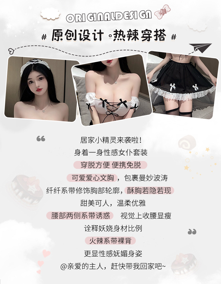 섹시한 이너웨어 메이드복 유혹 세트 침대에서 핫한 작은 가슴이 더 커 보이는 잠옷 2670스토어 가기