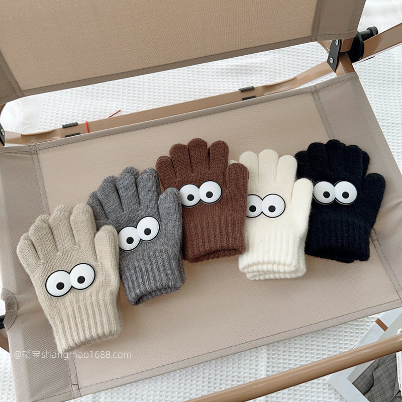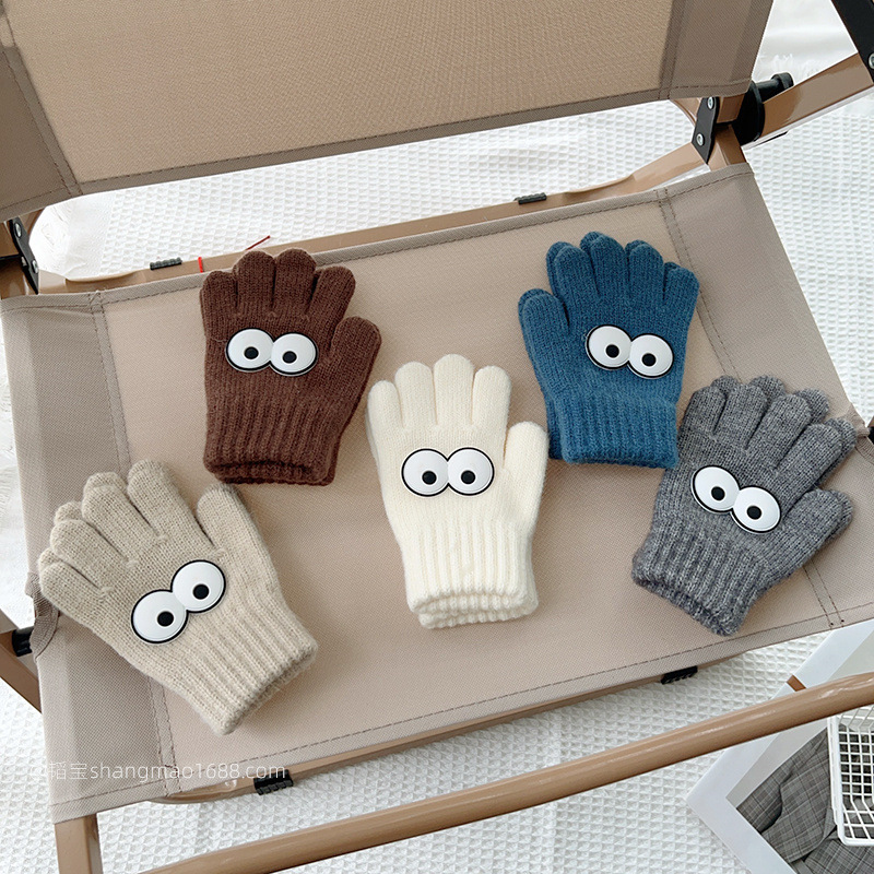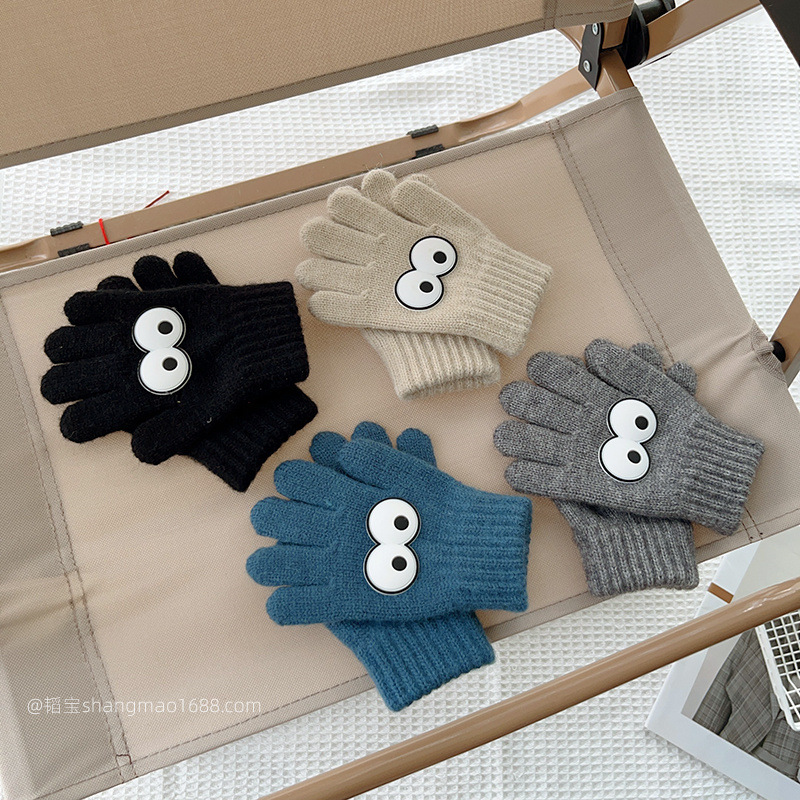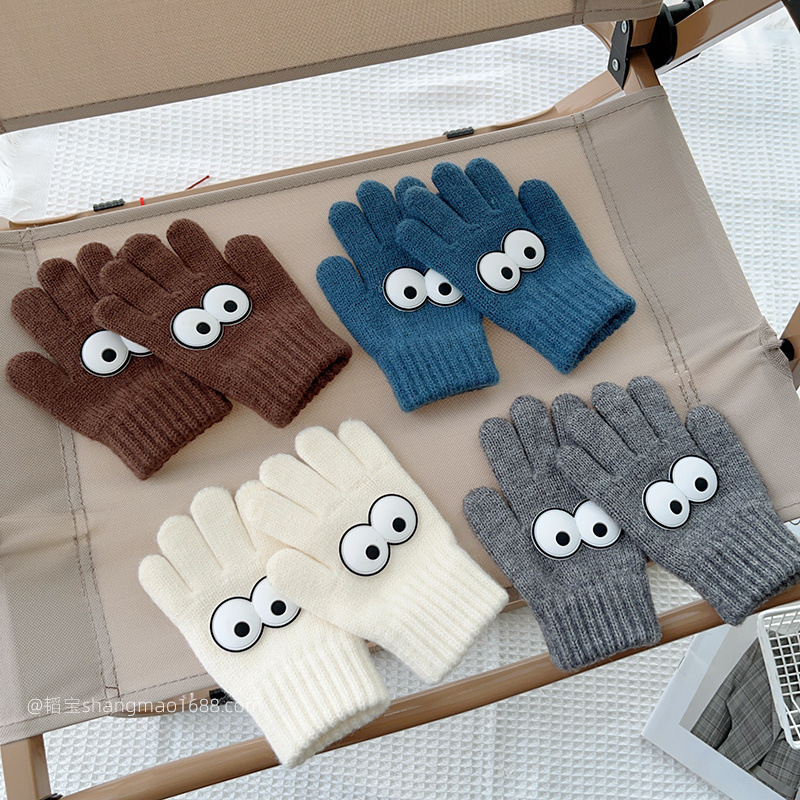 한국 스타일 새로운 어린이 큰 눈 가을과 겨울 Ins 스타일 따뜻한 니트 5 손가락 아기 장갑 소년 소녀스토어 가기