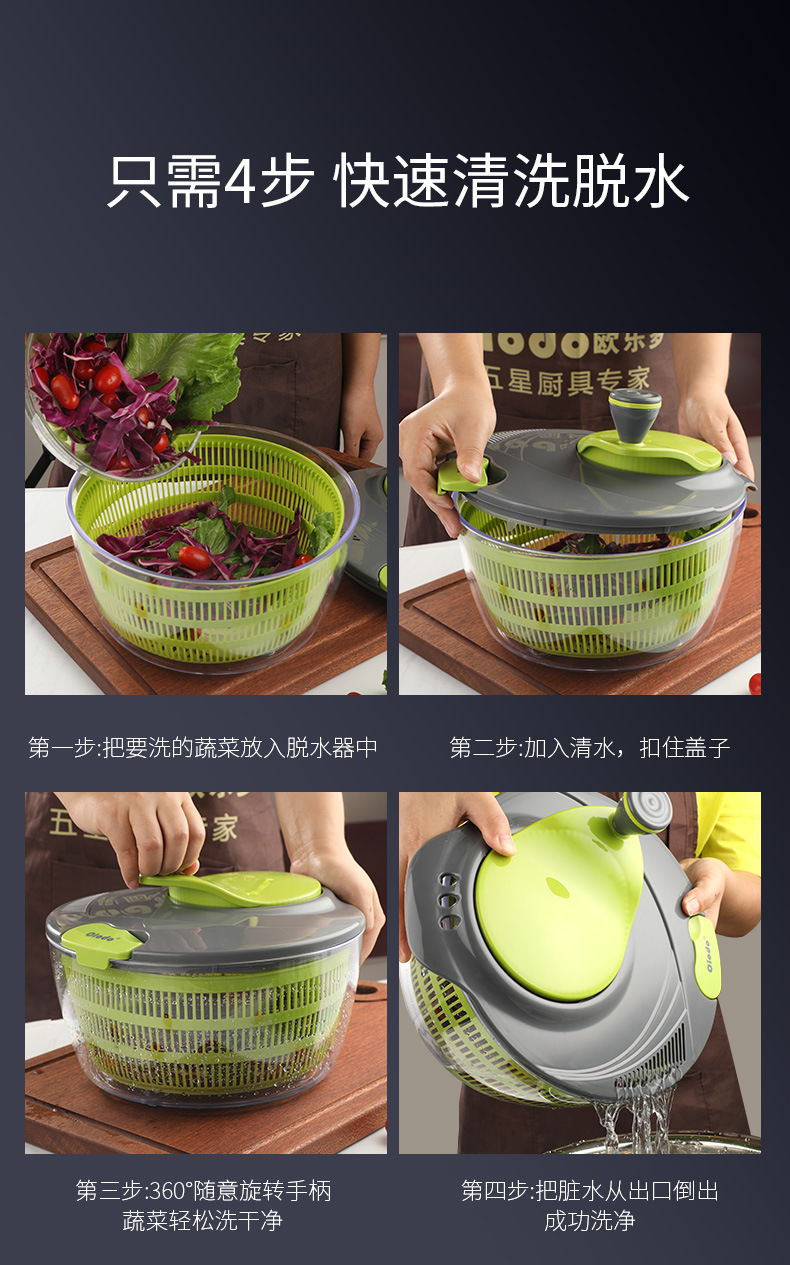 Ouleduo 야채 건조기 탈수기 가정용 다기능 야채 세척 및 배수 바구니 수동 창조적 인 과일 탈수기