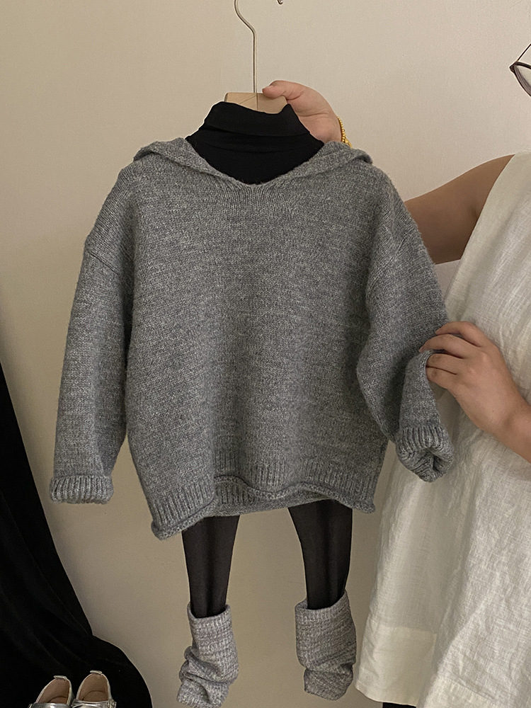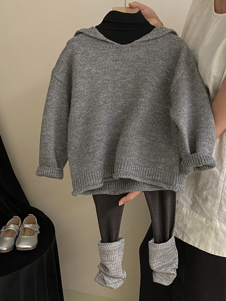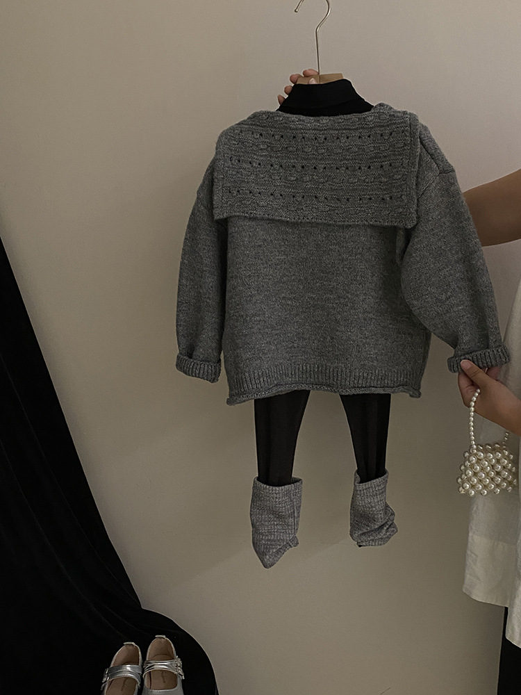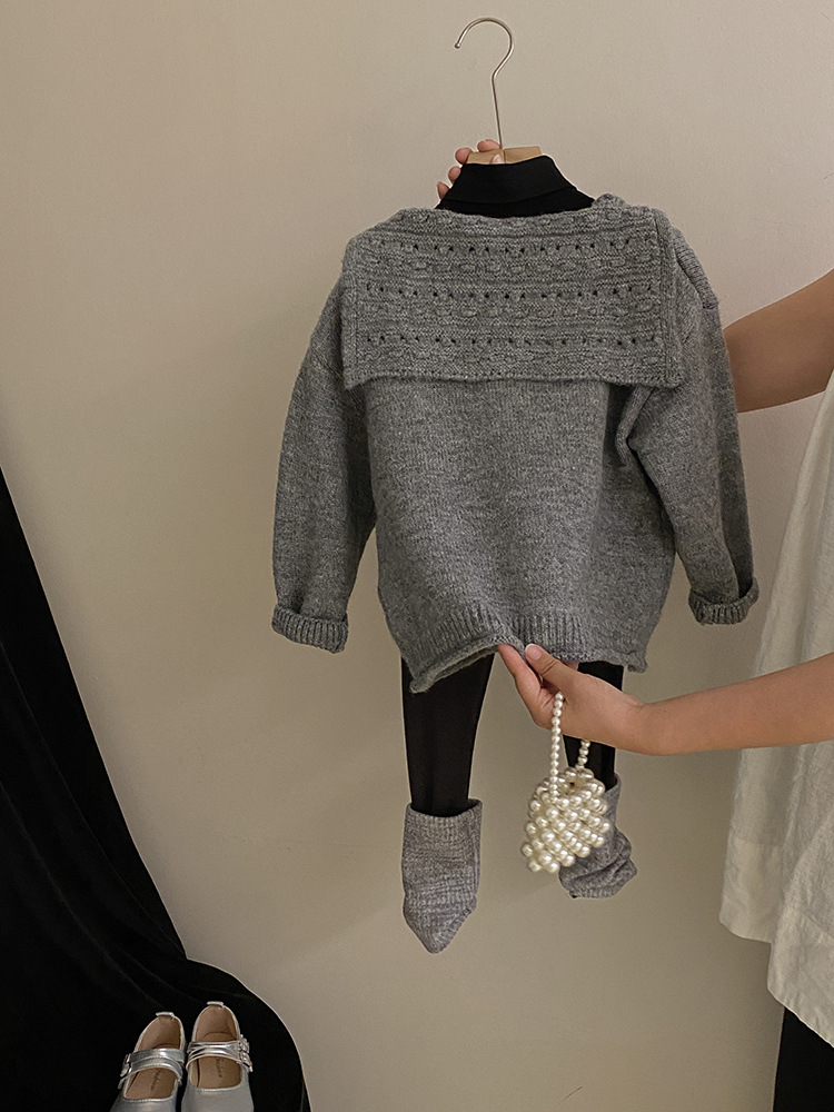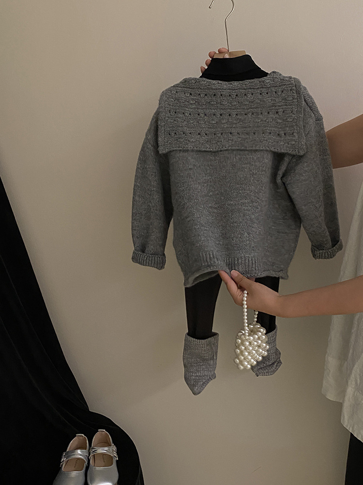 여자 2024 가을 새로운 우아한 해군 대형 옷깃 니트 스웨터 솔리드 컬러베이스 옷 올 매치 레깅스 세트스토어 가기