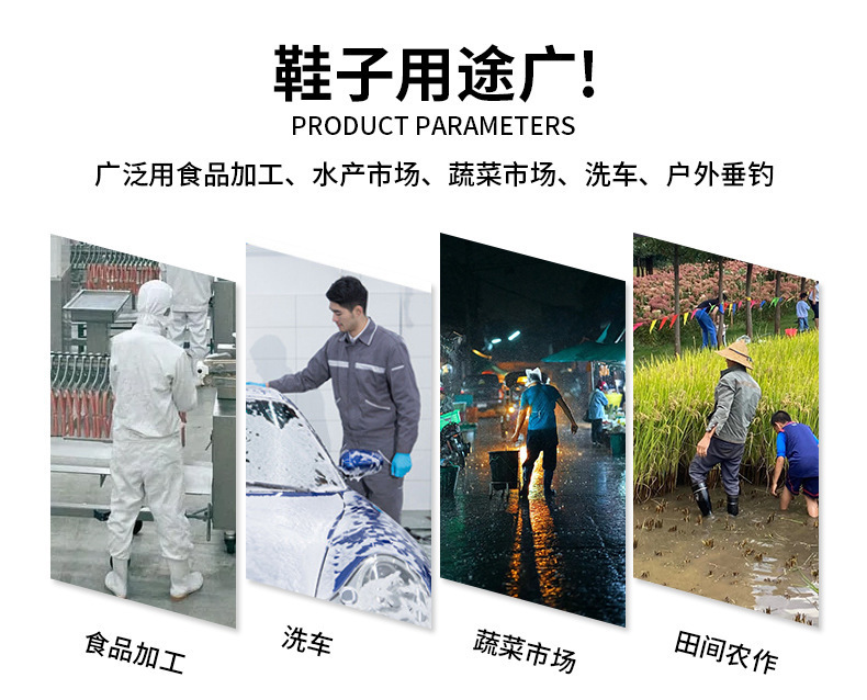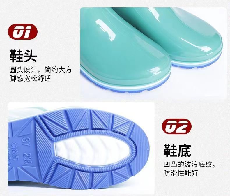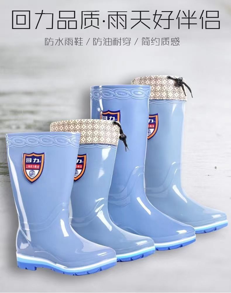 상하이 Huili 703 장화 장화 장화 성인 한국 버전의 높은 물 신발 미끄럼 방지 플랫 힐 워터 부츠 도매 머리카락 세대