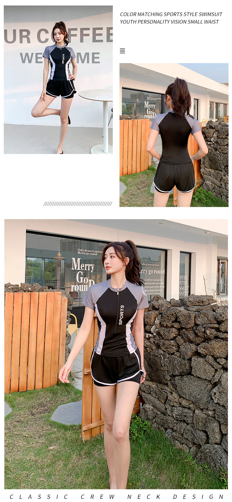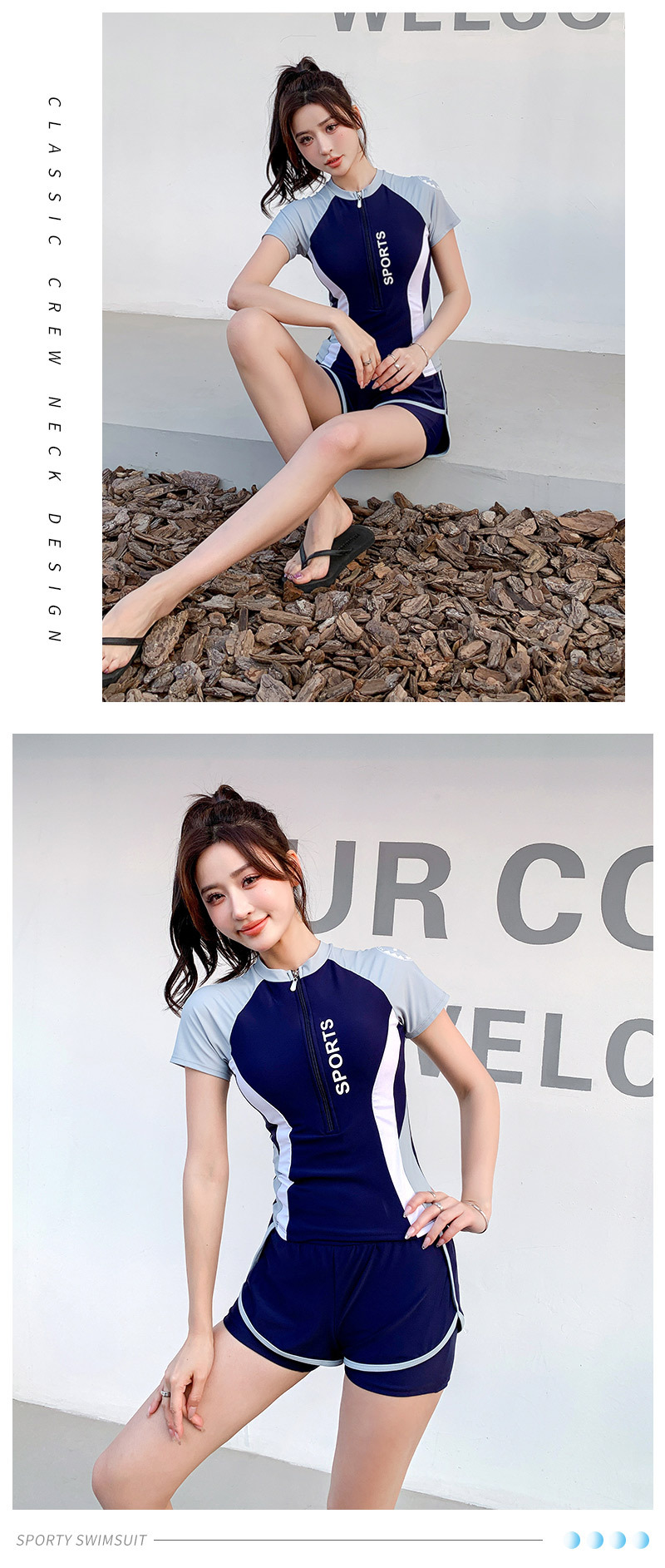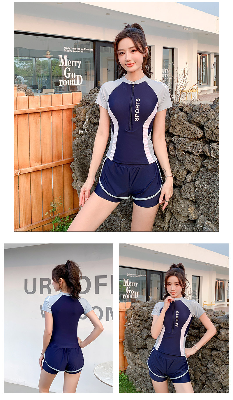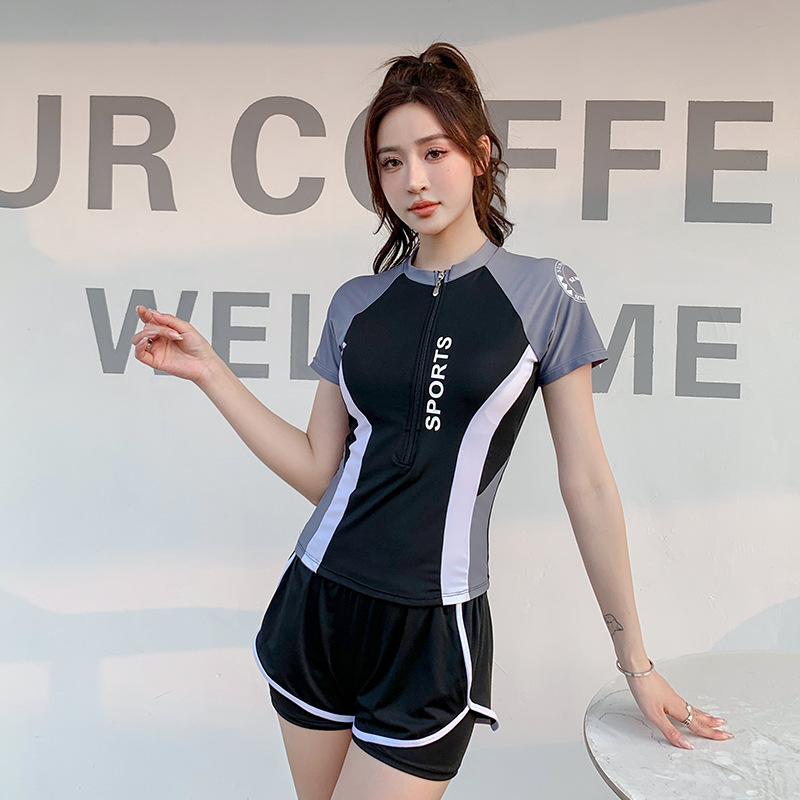 여름 스포츠 스타일 수영복 여성용 스플릿 캐주얼 인 학생 보수적 슬리밍 배 커버 수영장 수영 장비스토어 가기