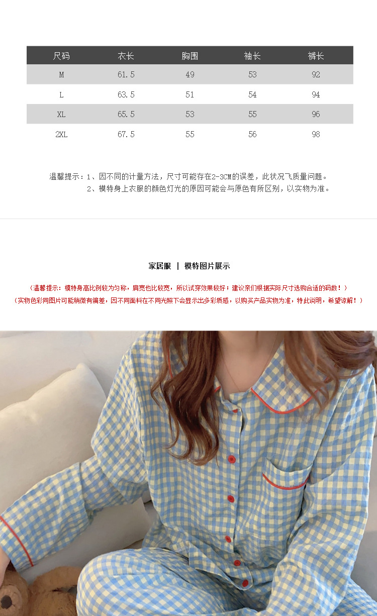 Ins Pajamas 여성 한국 스타일 봄과 가을 인형 칼라 플레이드 컬렉션 신선한 긴 소매 느슨한 우유 실크 홈 옷스토어 가기
