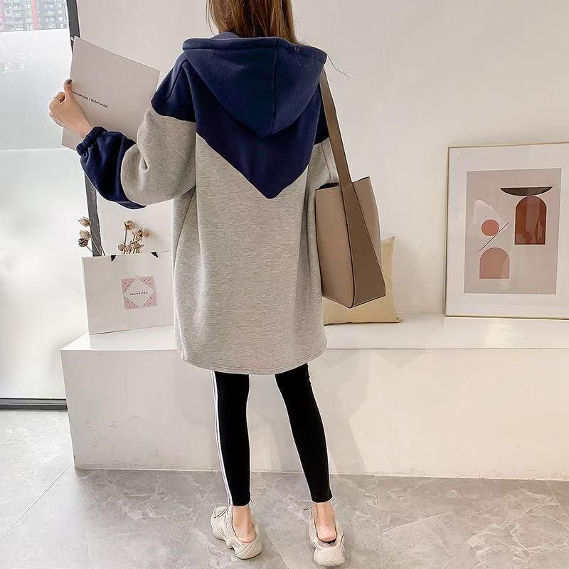 플러스 사이즈 여성의 새로운 가을과 겨울 한국 패션 캐주얼 탑 학생 코트 느슨한 긴 후드 스웨터스토어 가기