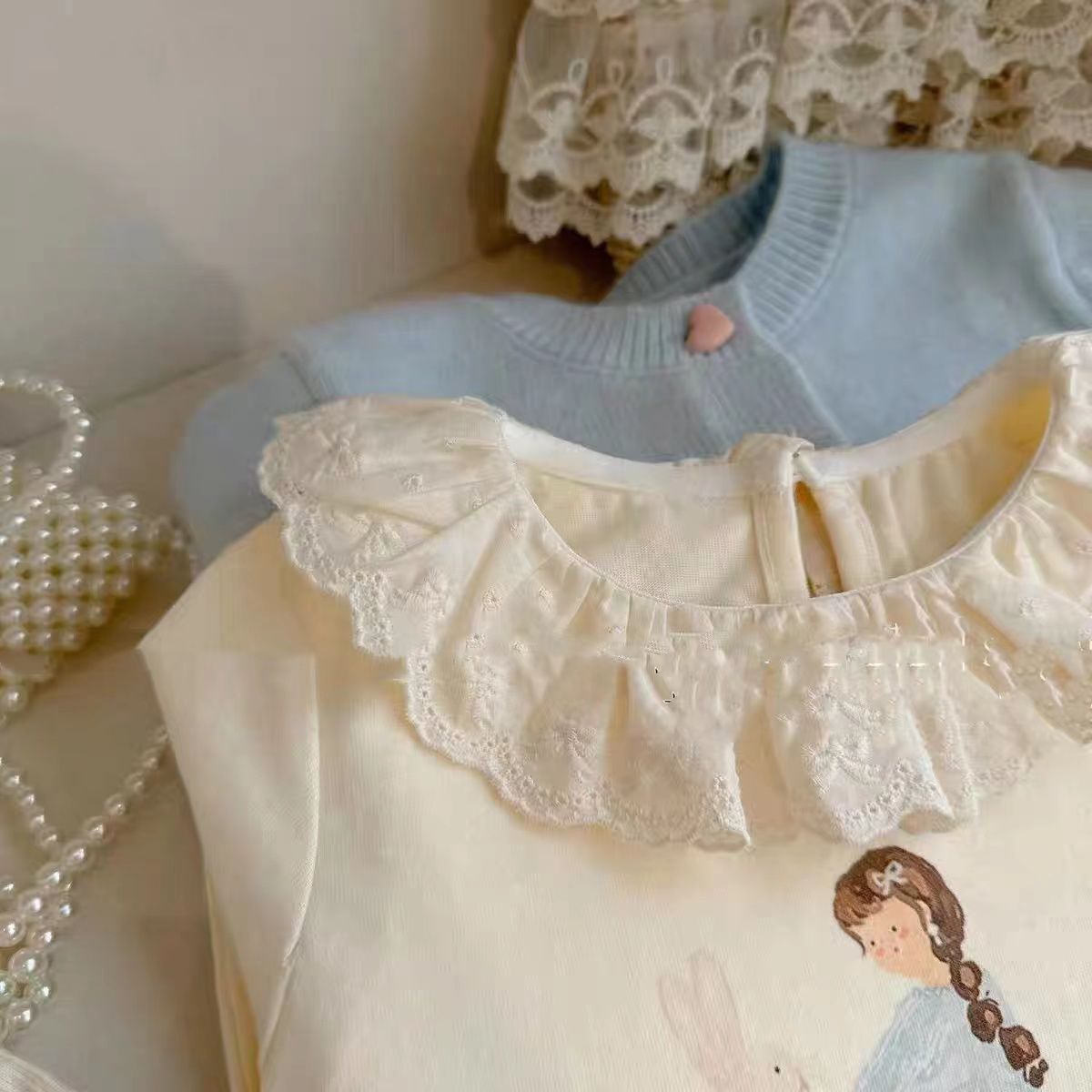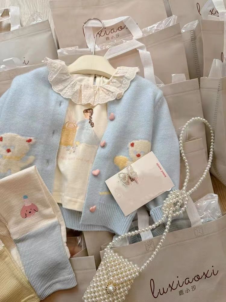 소녀 니트 카디건 2024 가을 새로운 한국 스타일 외국 스타일 아기 토끼 스웨터 어린이 니트 탑 세트스토어 가기