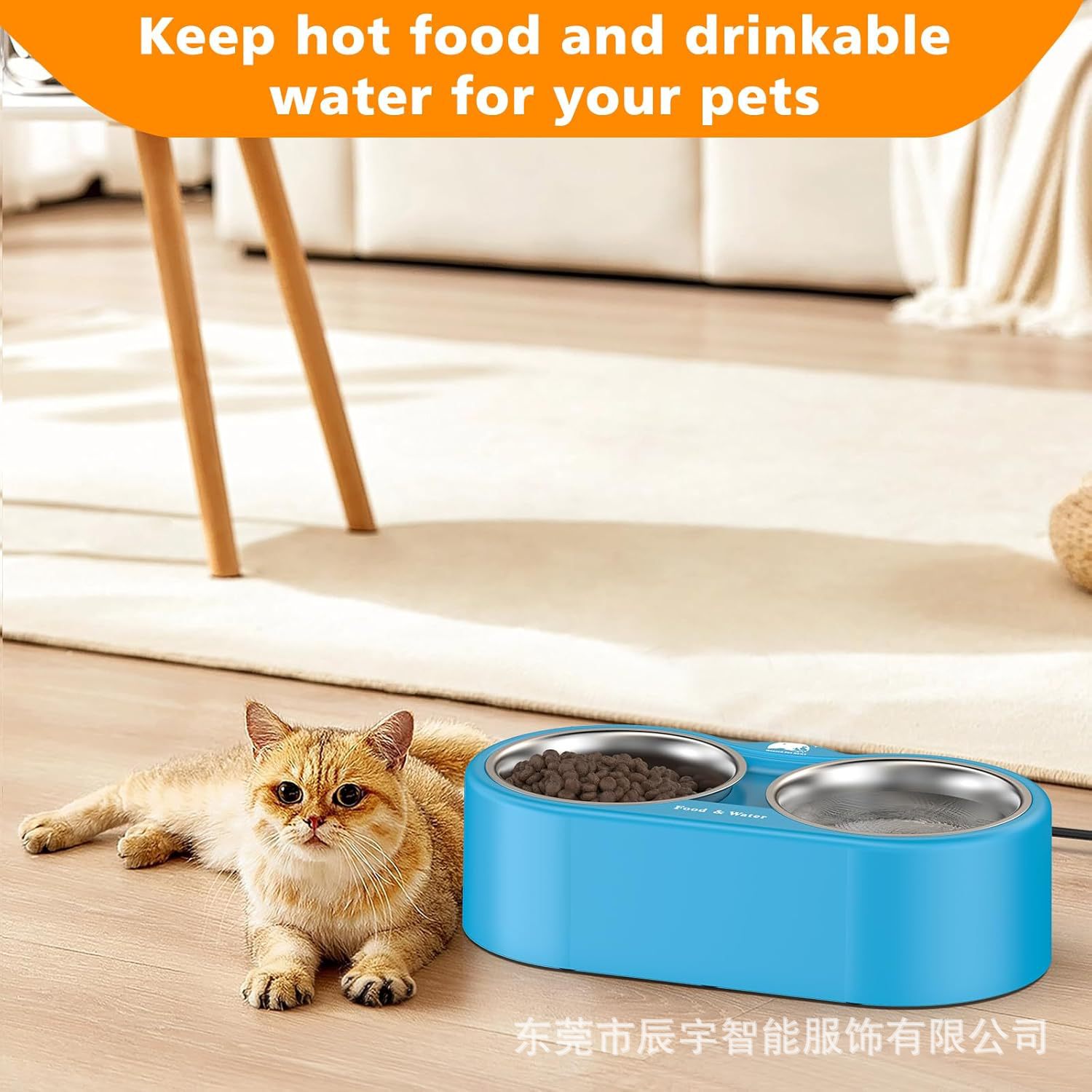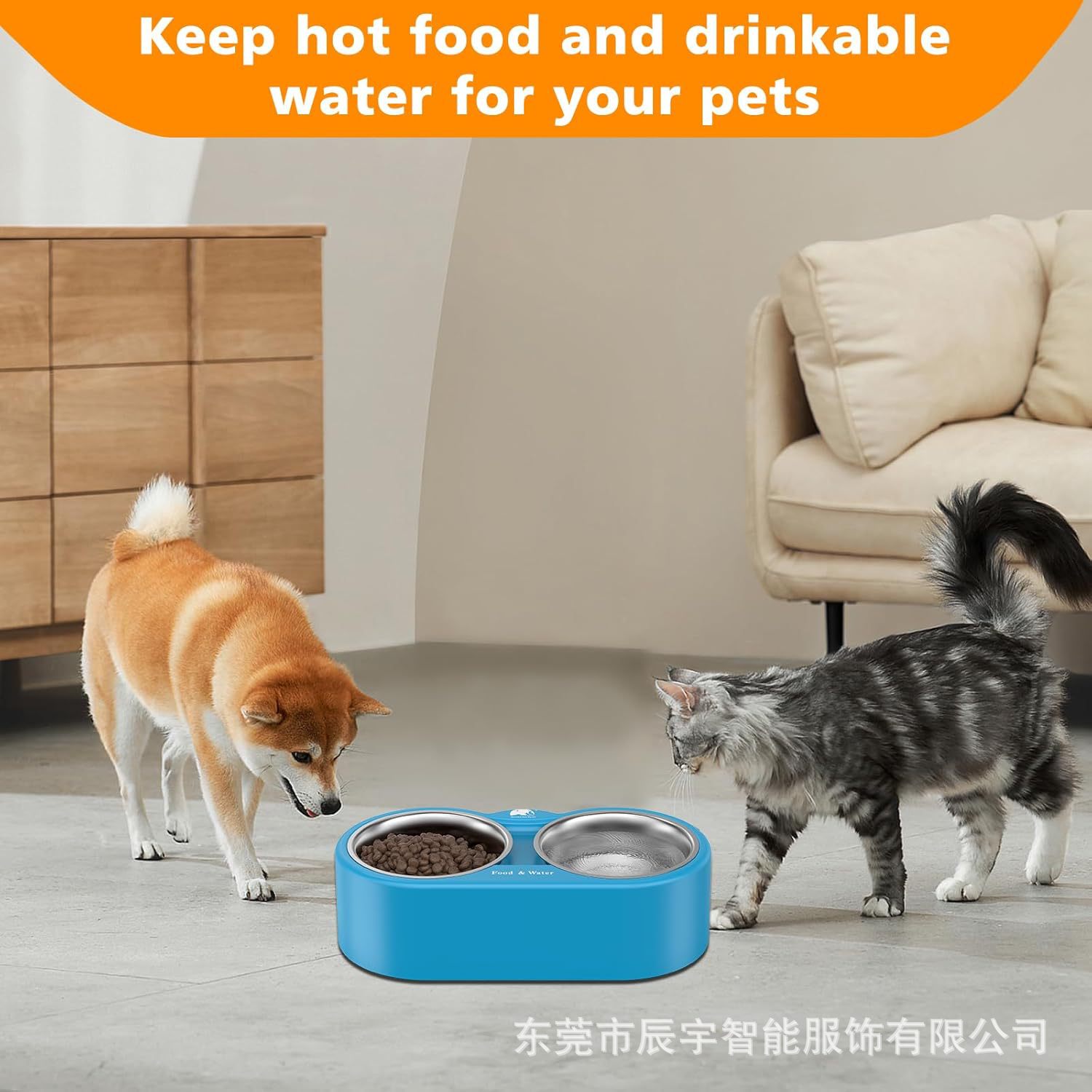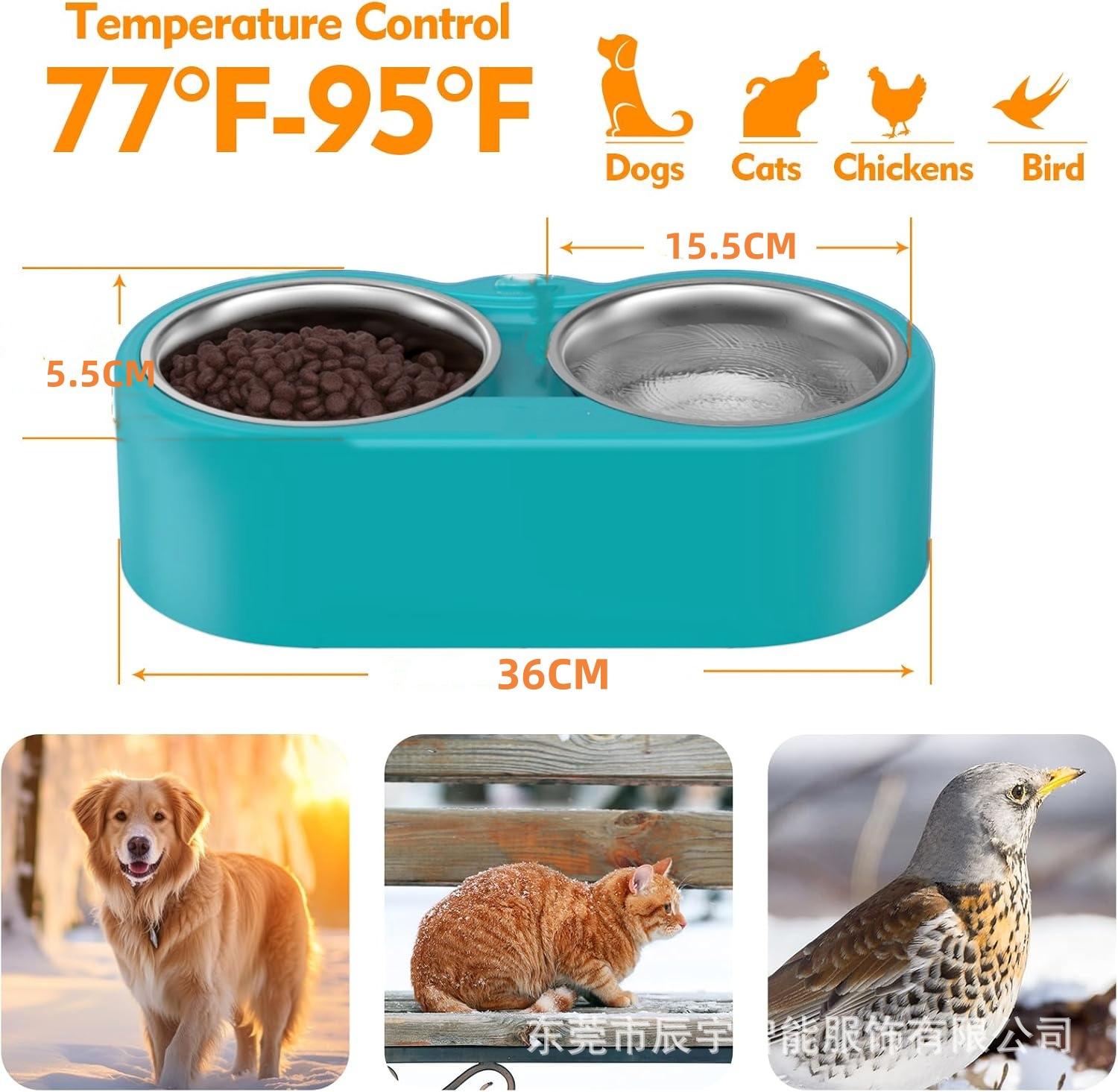 일정한 온도 애완 동물 스테인레스 스틸 더블 보울 자동 난방 단열 개 그릇 고양이 그릇 통합 야외 애완 동물 난방 그릇 국경스토어 가기