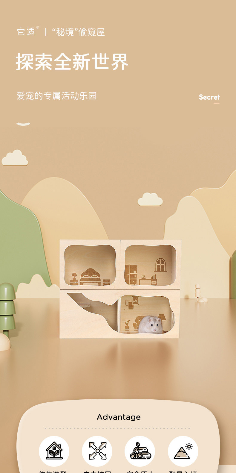 햄스터 은신처, 애완동물 목재 제품, 골든베어 작은 집, 관찰 장식품, 원목 용품, 햄스터 케이지스토어 가기