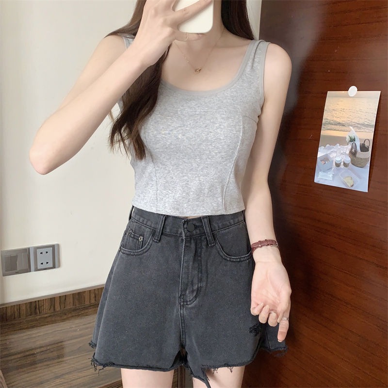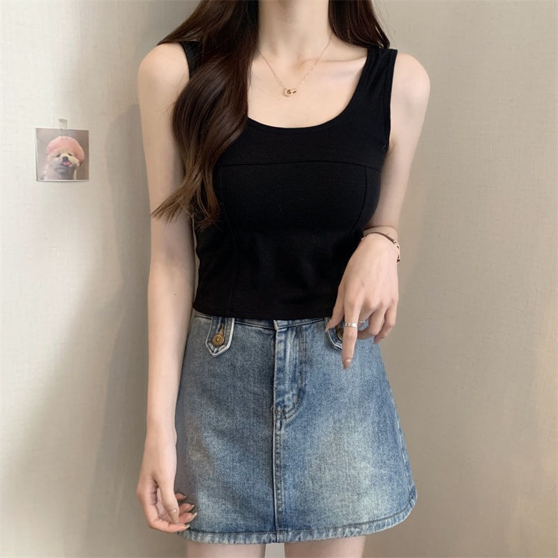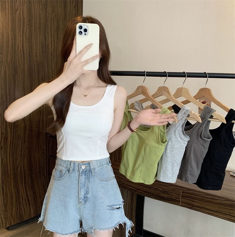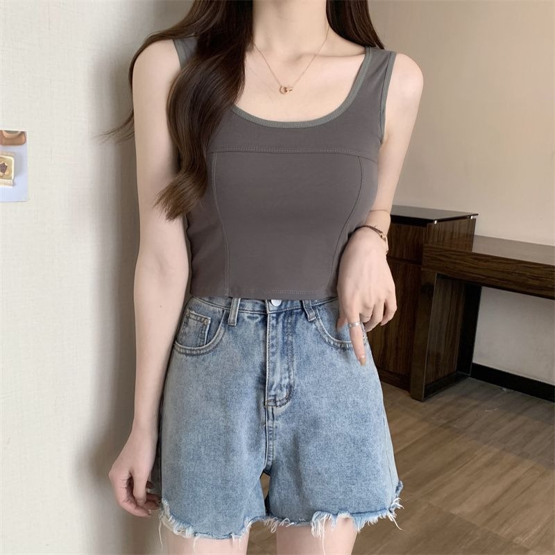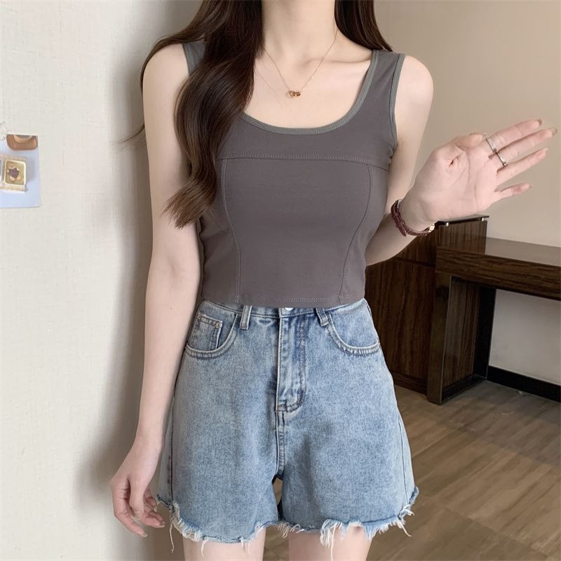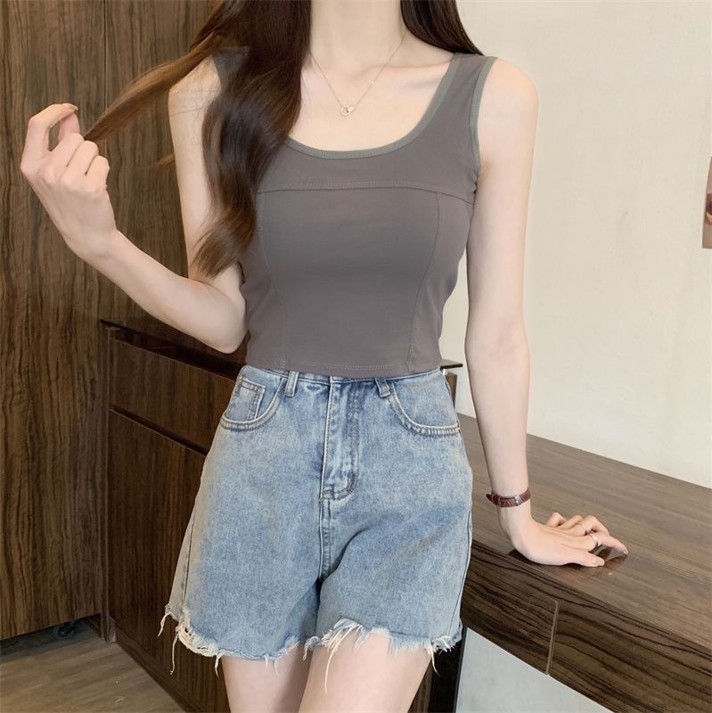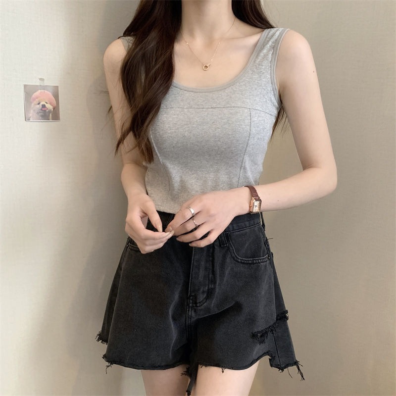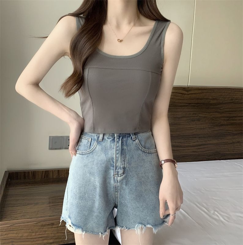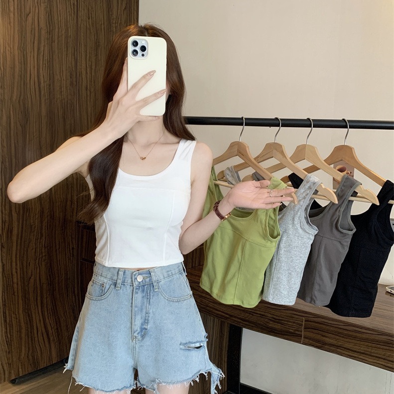 한국식 솔리드 컬러 카미솔 여성용 내부 민소매 바토밍 베스트 베스트 베스트 여성용 아웃웨어, 가슴 패드 끈이없는 여름 얇은스토어 가기