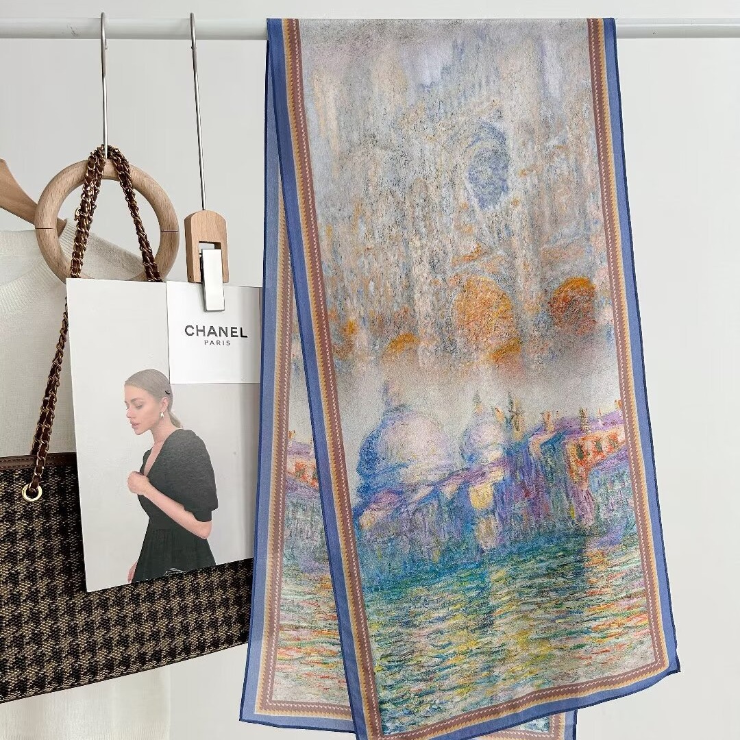 유화 100 뽕나무 실크 더블 주름 스카프 여성용 긴 실크 스카프 봄과 가을 어울리는 셔츠 스카프 선물 스카프스토어 가기