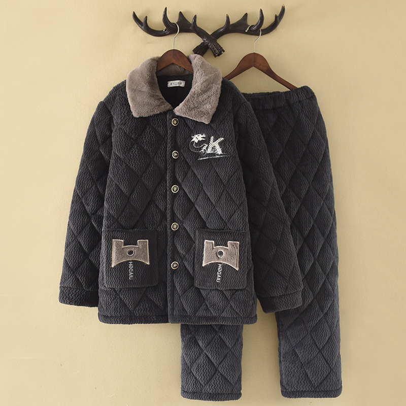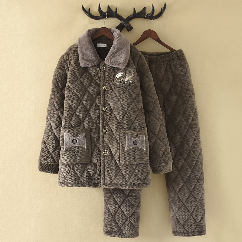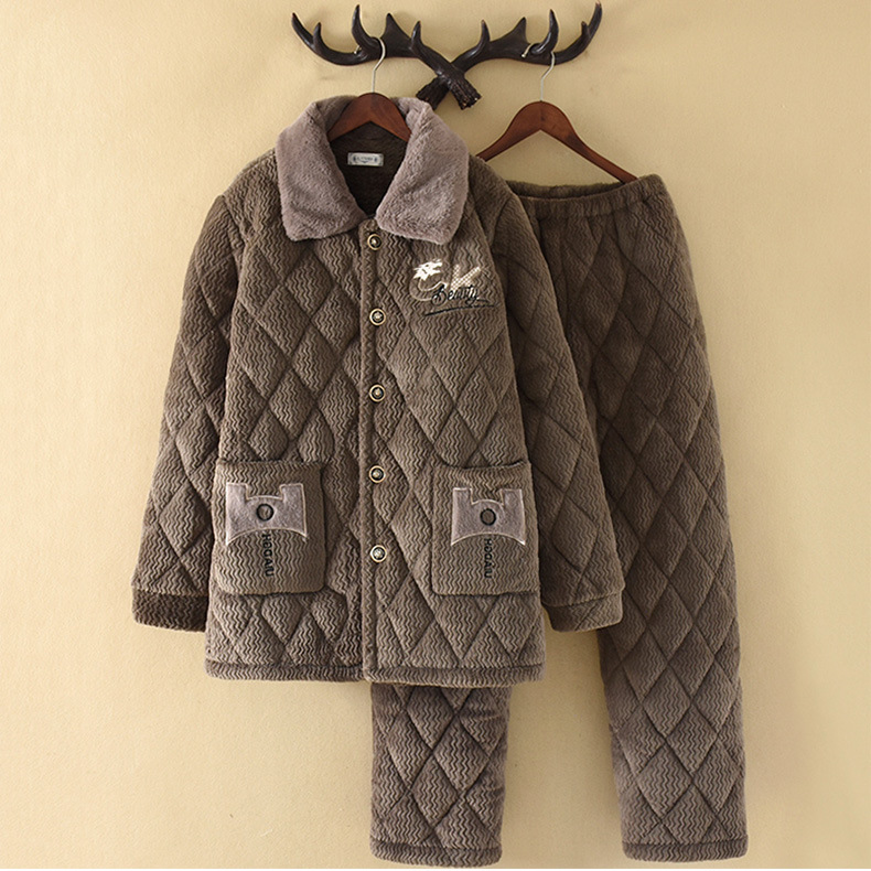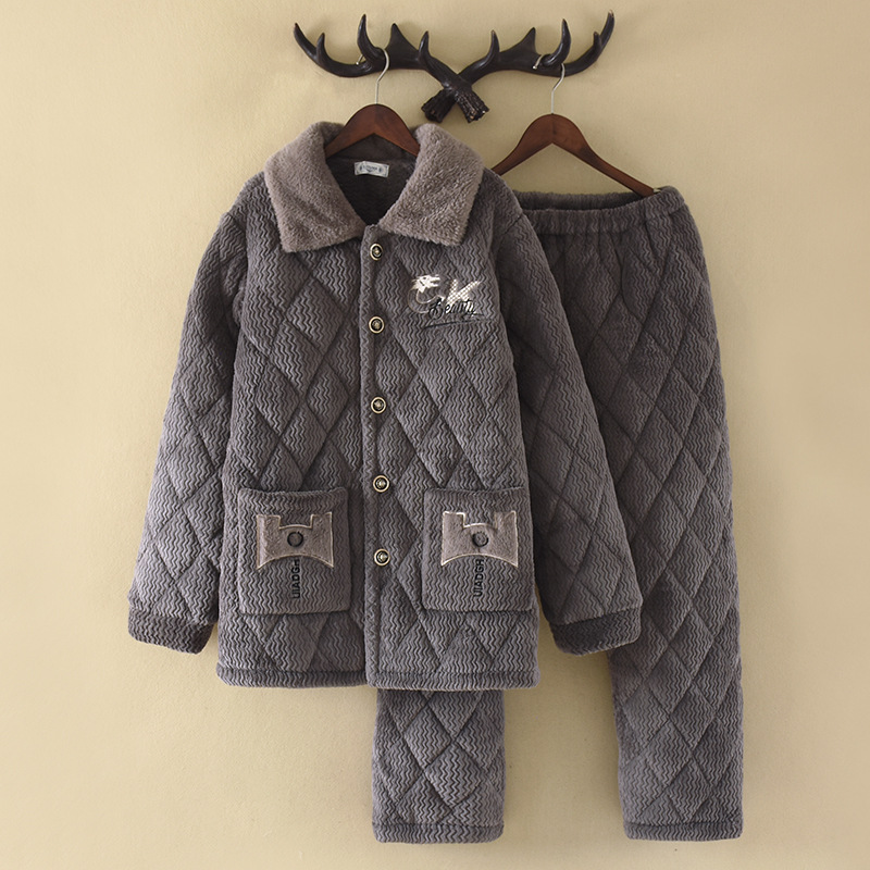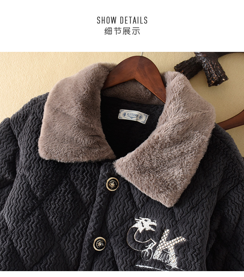 남자 잠옷 2024 가을과 겨울 새로운 산호 양털 기모 3 층 면화 자켓 플러스 사이즈 홈 옷스토어 가기