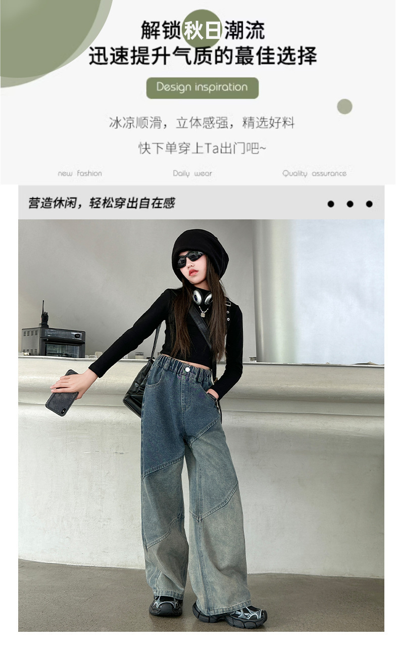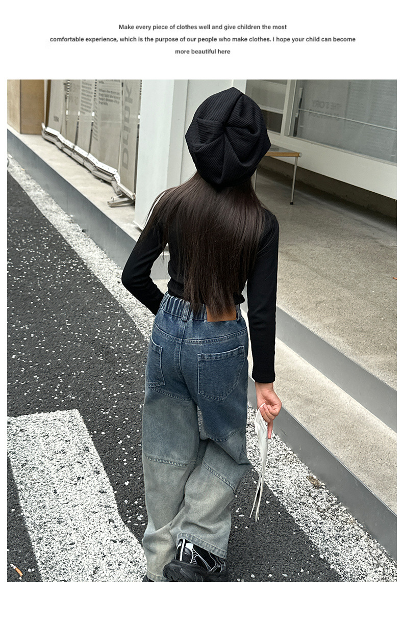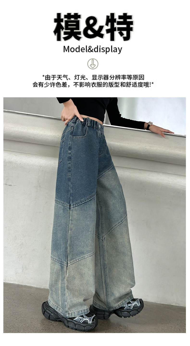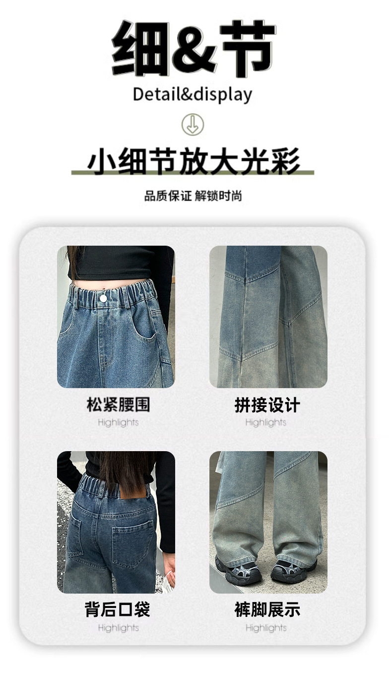 소녀의 봄과 가을 새로운 청바지 2024 모든 경기 서양 스타일 폐기물 지구 스타일 느슨한 슬리밍 스트레이트 바지 어린이 캐주얼 바지스토어 가기