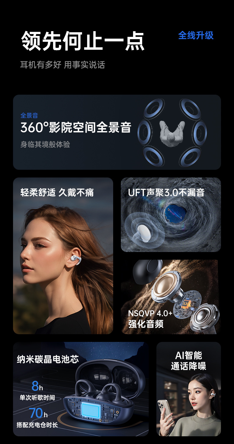 • 오로라 블랙*안정적이고 편안한 착용감 ★ 88시간의 긴 배터리 수명 ★ 소리 누출 없는 지향성 음장 ★ AI 소음 감소 울트라 클리어 통화