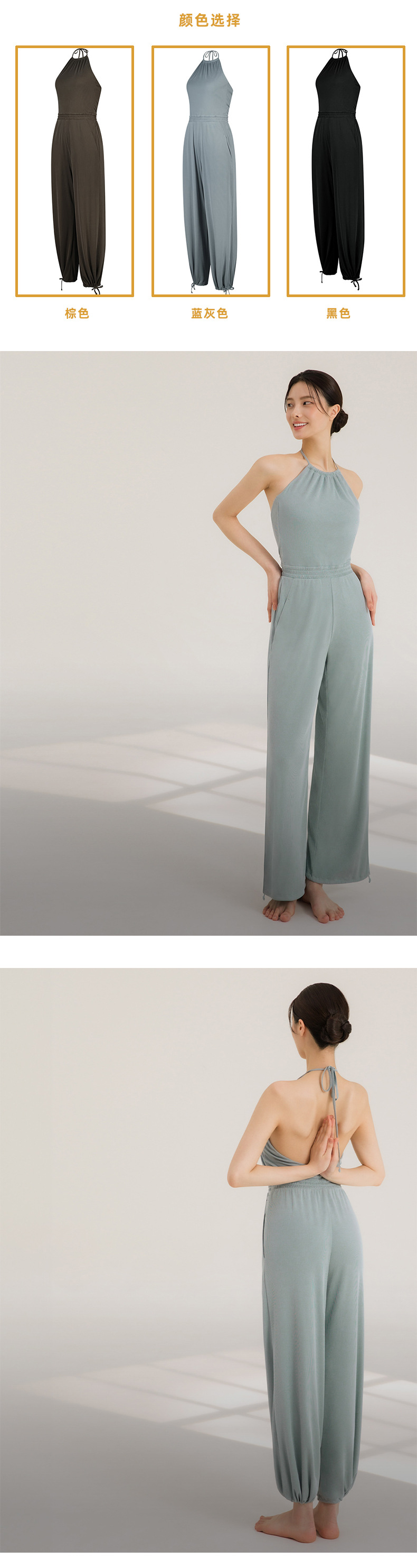 새로운 우아한 교수형 목 스트랩 섹시한 백리스 세트 요가 세트 넓은 다리 게으른 한국 필라테스 세트스토어 가기