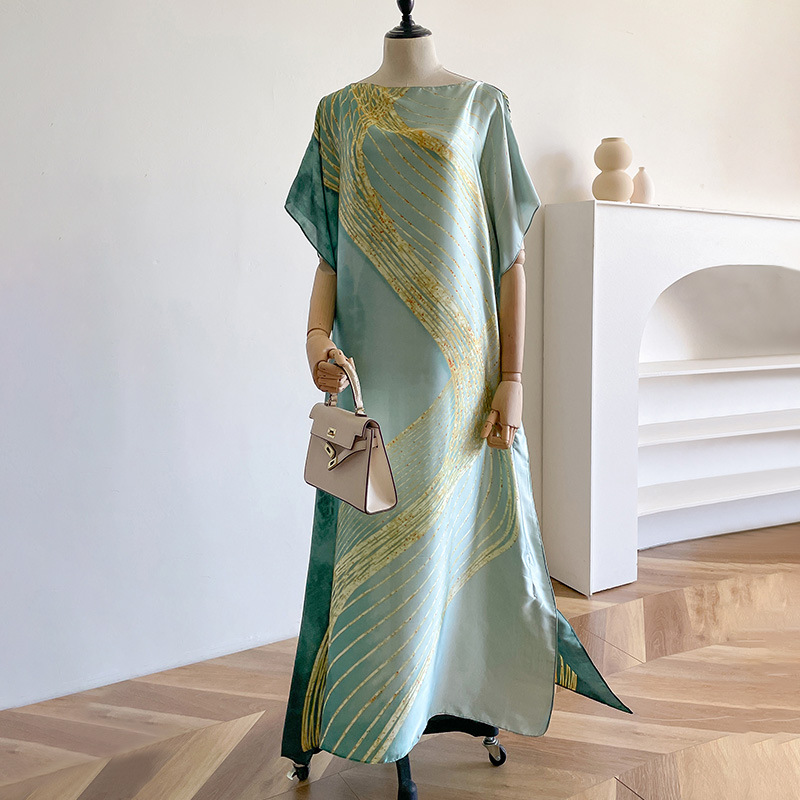 여름 새로운 느슨한 긴 원피스 간단한 긴 리 브로케이드 새틴 선 스크린 우아한 실크 스카프 해변 휴가 여행 목도리