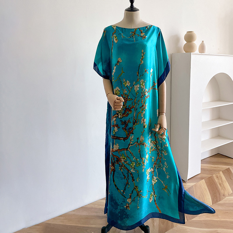 여름 새로운 느슨한 긴 원피스 간단한 긴 리 브로케이드 새틴 선 스크린 우아한 실크 스카프 해변 휴가 여행 목도리스토어 가기