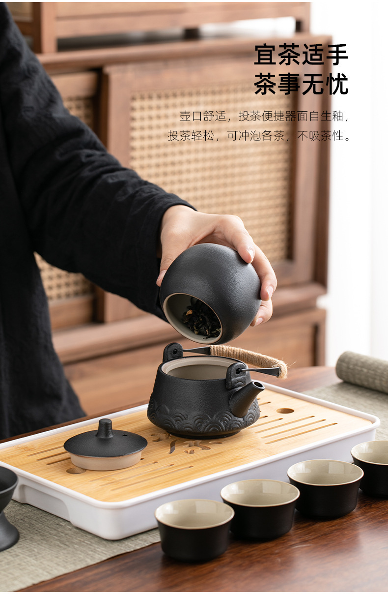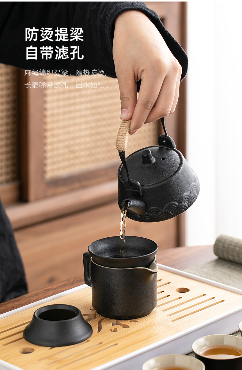 휴대용 여행 차 세트 세트 손잡이 냄비 자동차 캠핑 중국 차 트레이 사무실 쿵푸 차 냄비 티 컵