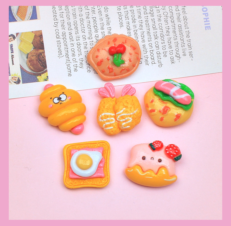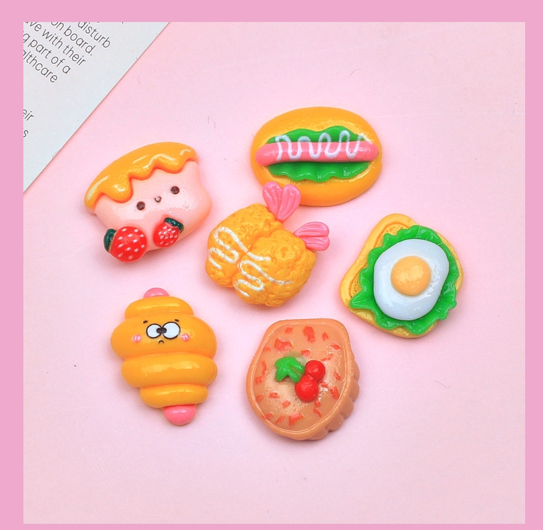 수지 만화 도매 액세서리 DIY 수제 구멍 신발 버클 크림 젤 머리핀 웃는 얼굴 황소 뿔 가방 음식 놀이스토어 가기