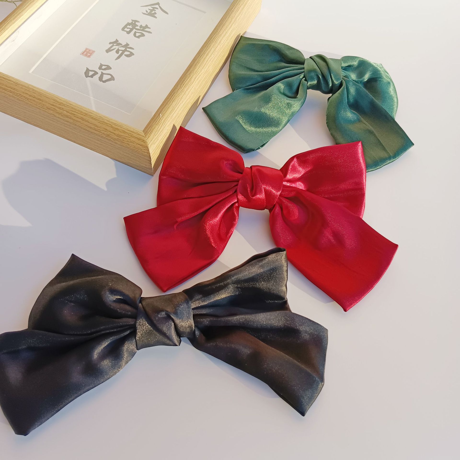 • 진한 녹색-새틴 직물----스프링 클립