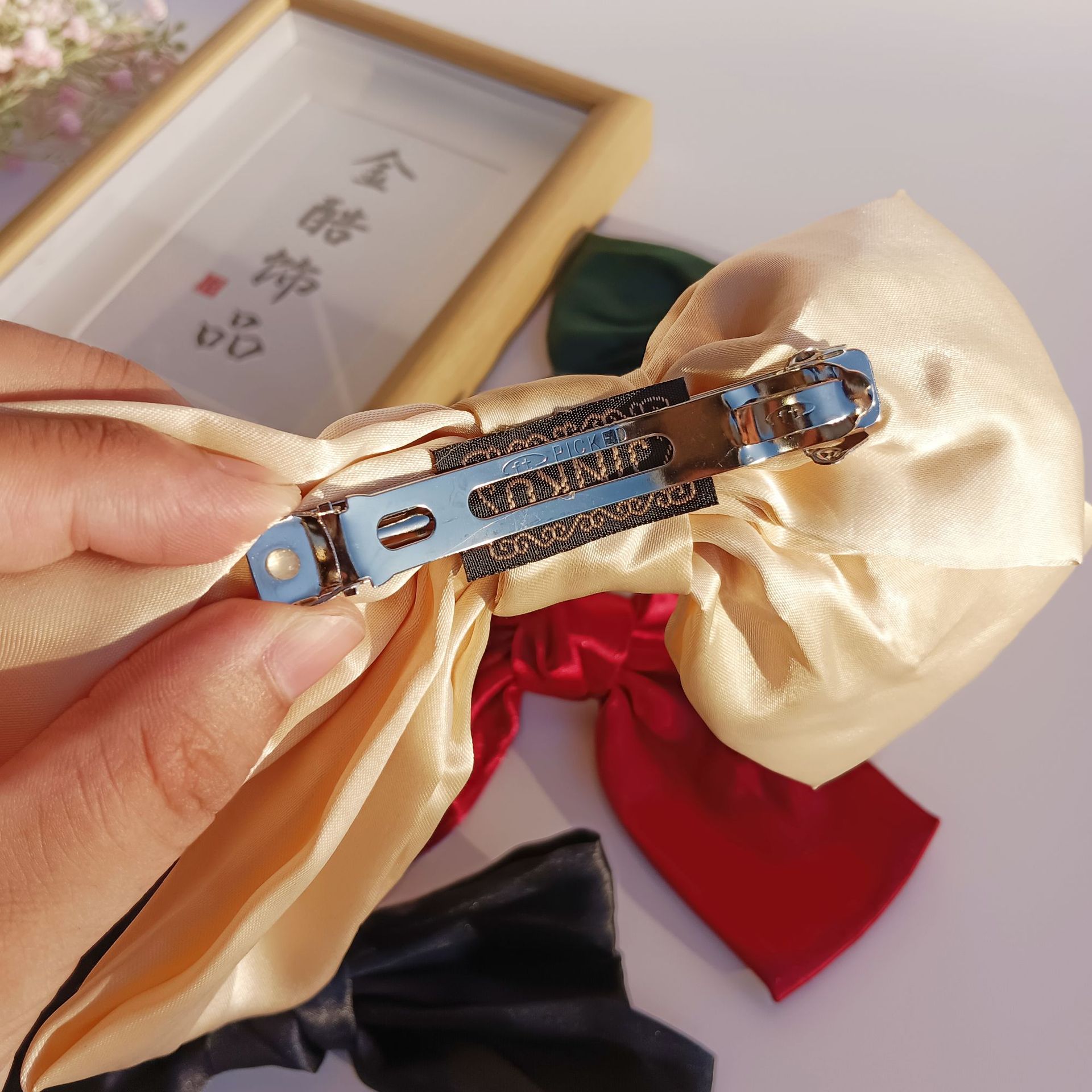 • 베이지-새틴 원단----스프링 클립