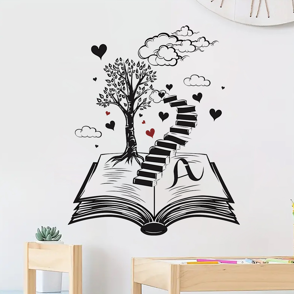 심장 스페이드 책 세계 자체 접착 벽 스티커 간단한 스타일 책 방 배경 벽 장식 스티커 BR0810E