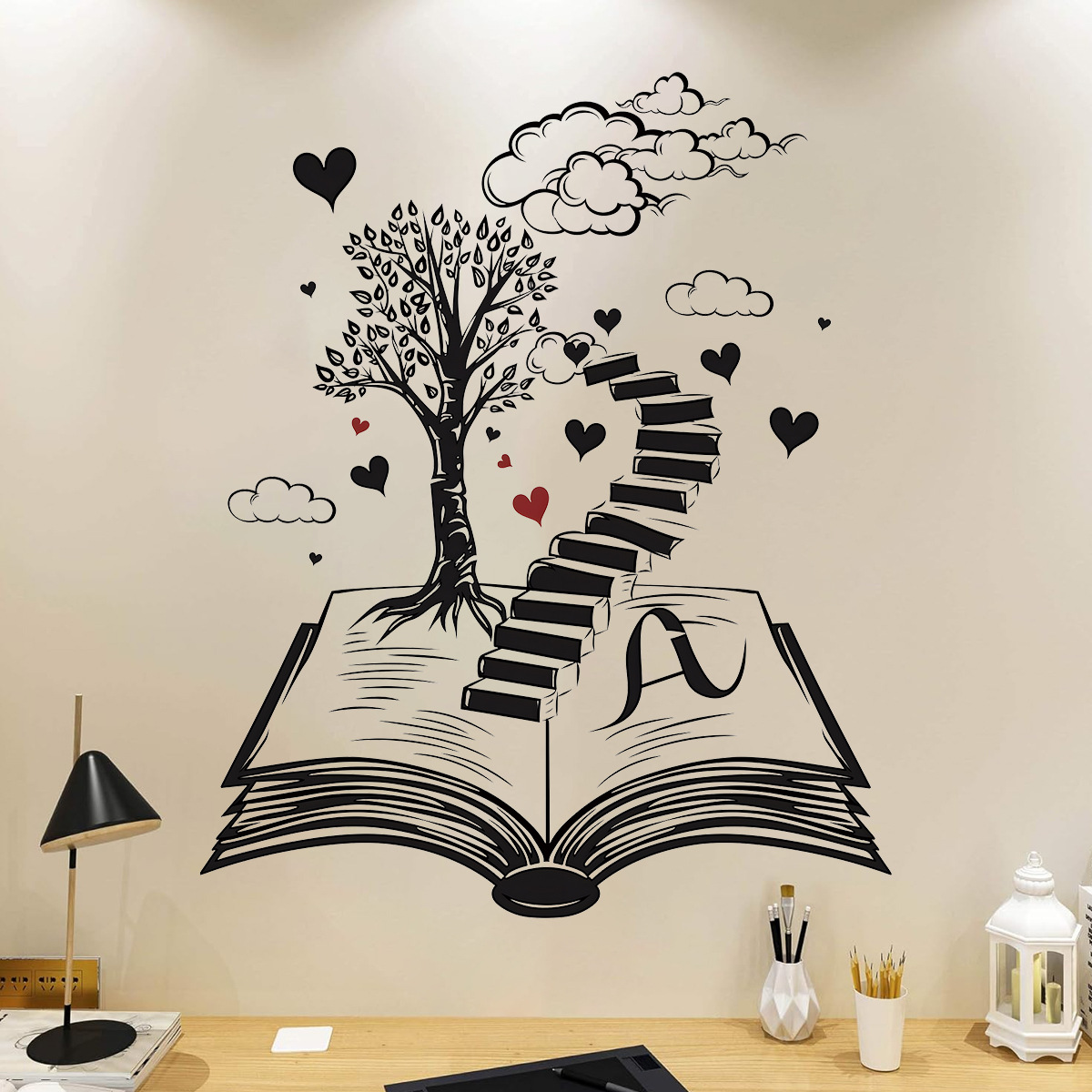 심장 스페이드 책 세계 자체 접착 벽 스티커 간단한 스타일 책 방 배경 벽 장식 스티커 BR0810E스토어 가기