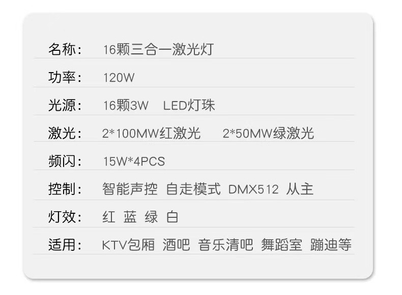 16개의 3-in-1 회전식 조명, 단일 헤드 회전 바 레이저 조명, KTV 룸용 다채로운 플래시 조명, 무대 조명