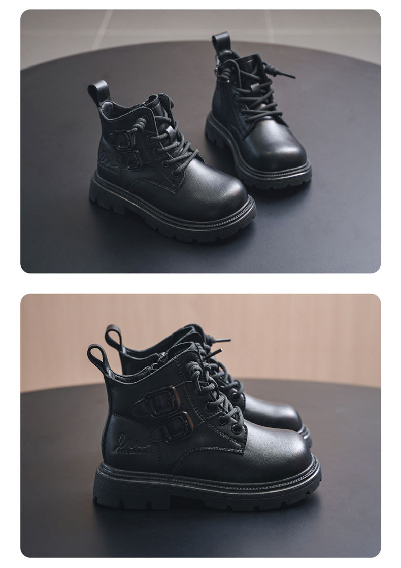 남아용 마틴 부츠 2023 겨울 신상 아동 부츠, 벨벳 안감과 두꺼운 안감으로 중대형 어린이용 남아용 면화 신발, 짧은 가죽 부츠스토어 가기