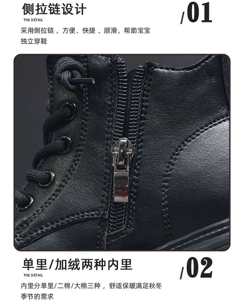 남아용 마틴 부츠 2023 겨울 신상 아동 부츠, 벨벳 안감과 두꺼운 안감으로 중대형 어린이용 남아용 면화 신발, 짧은 가죽 부츠