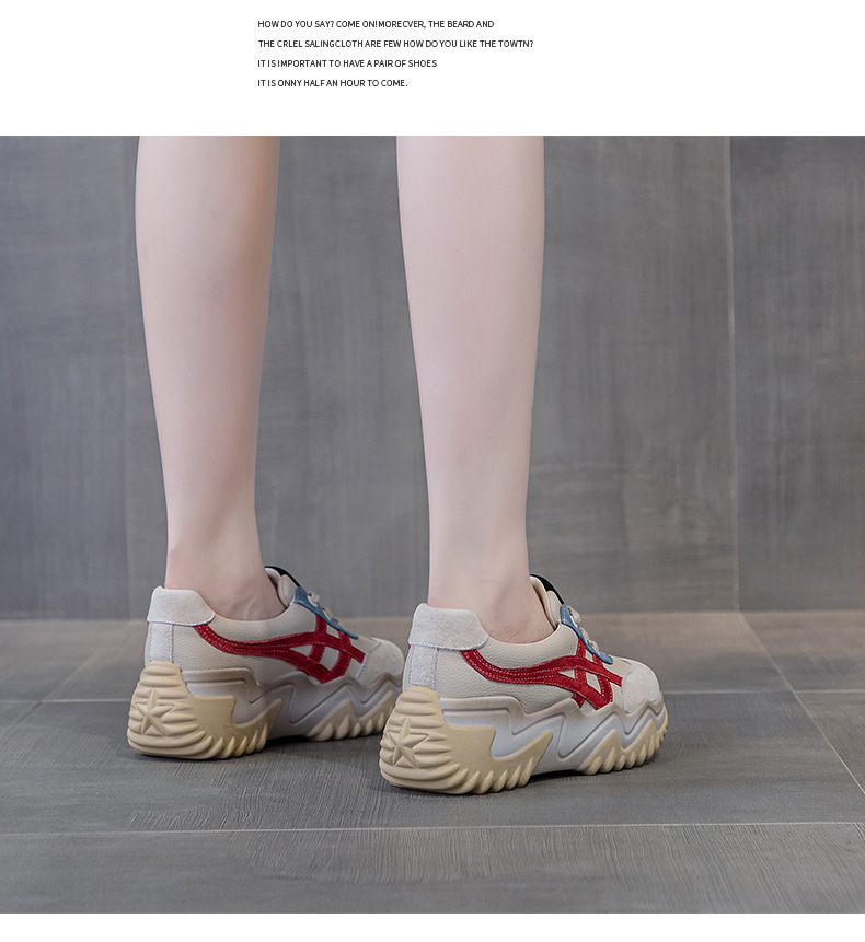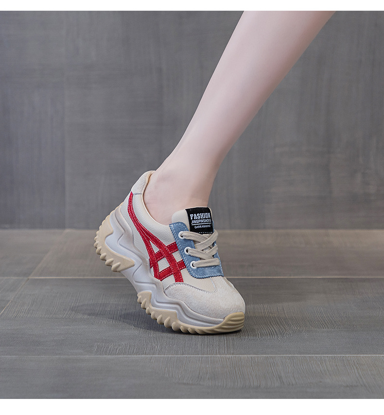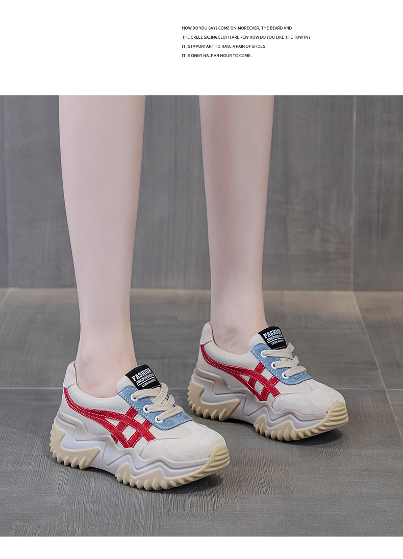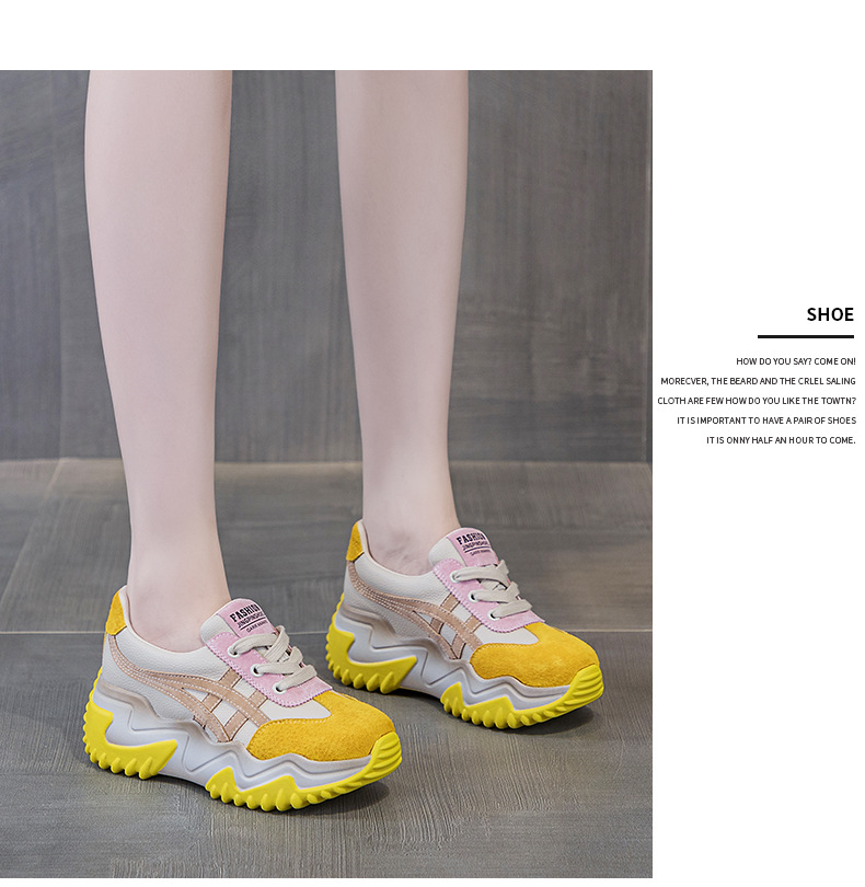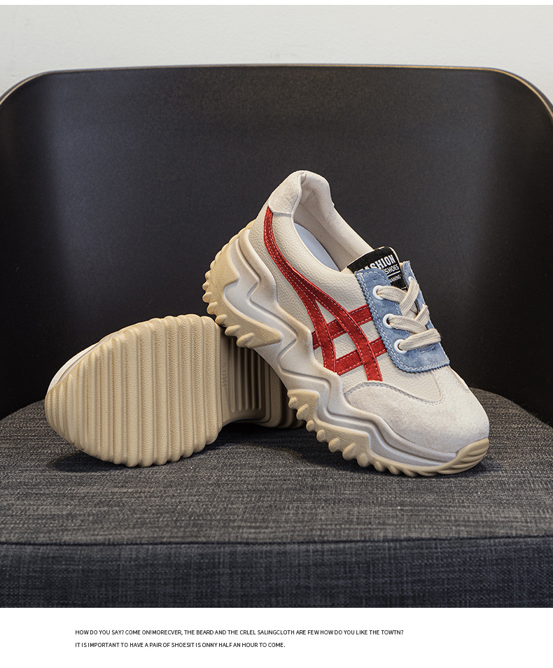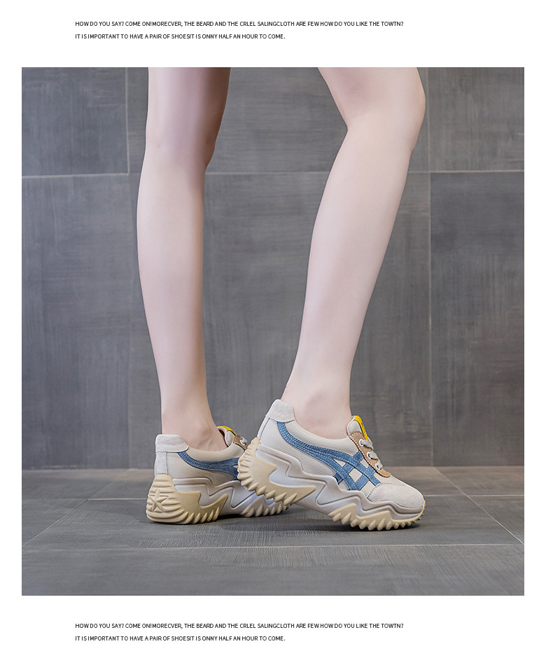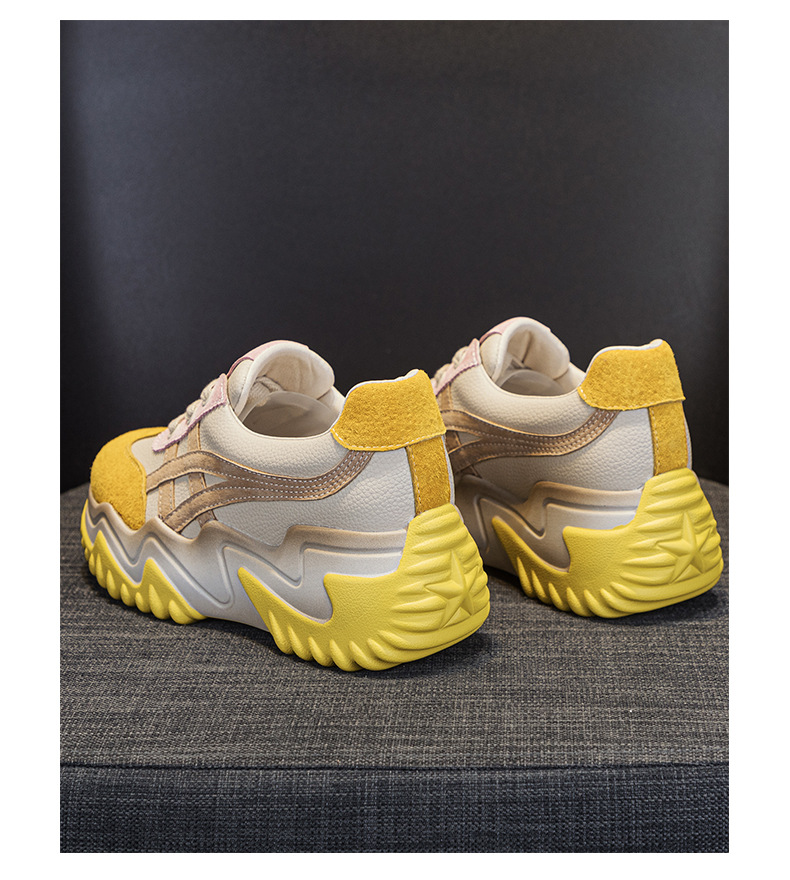 가을 2024 새로운 인테리어 높이 증가 가죽 캐주얼 아빠 신발 두꺼운 밑창 작은 흰색 신발 색상 일치 학생 신발 여성 신발스토어 가기