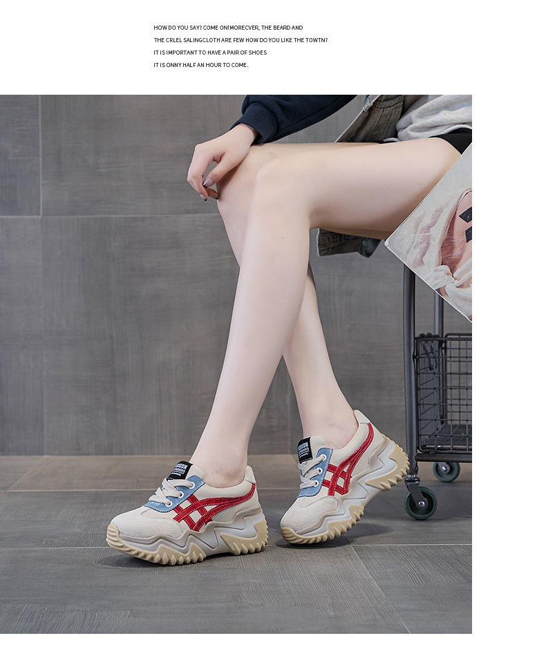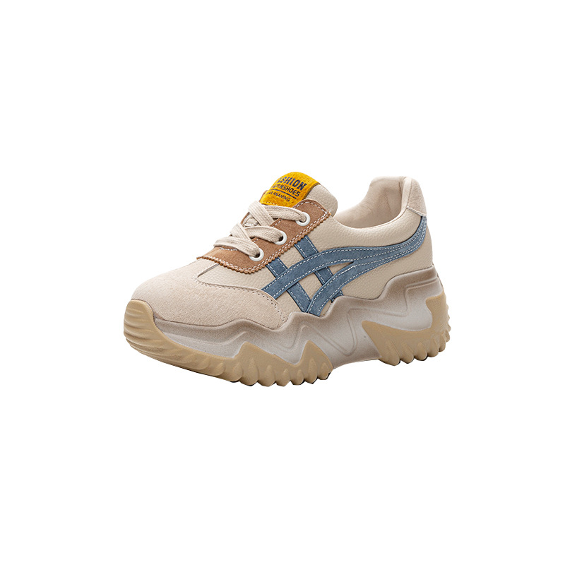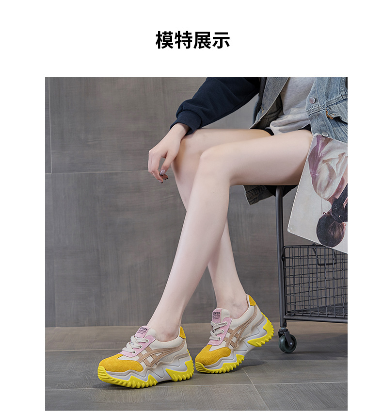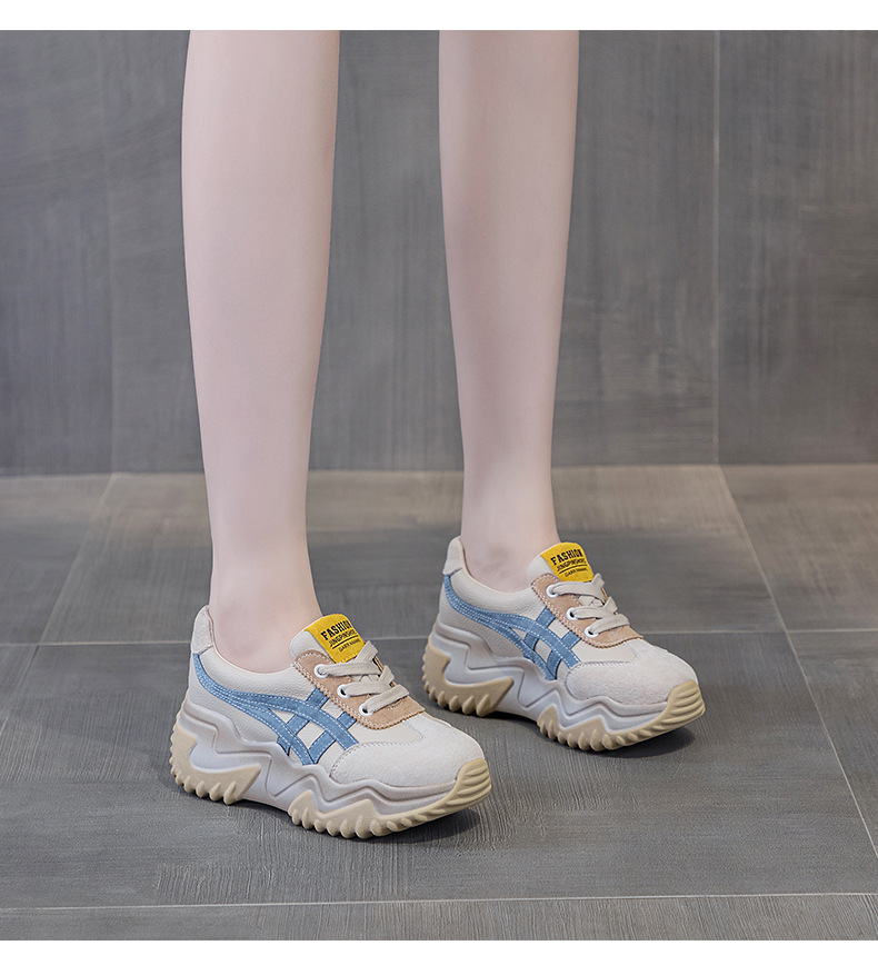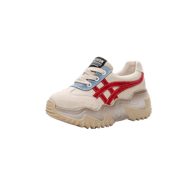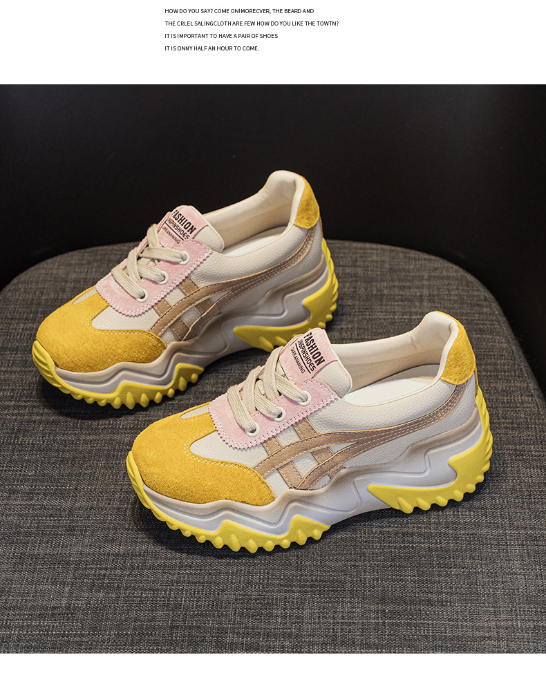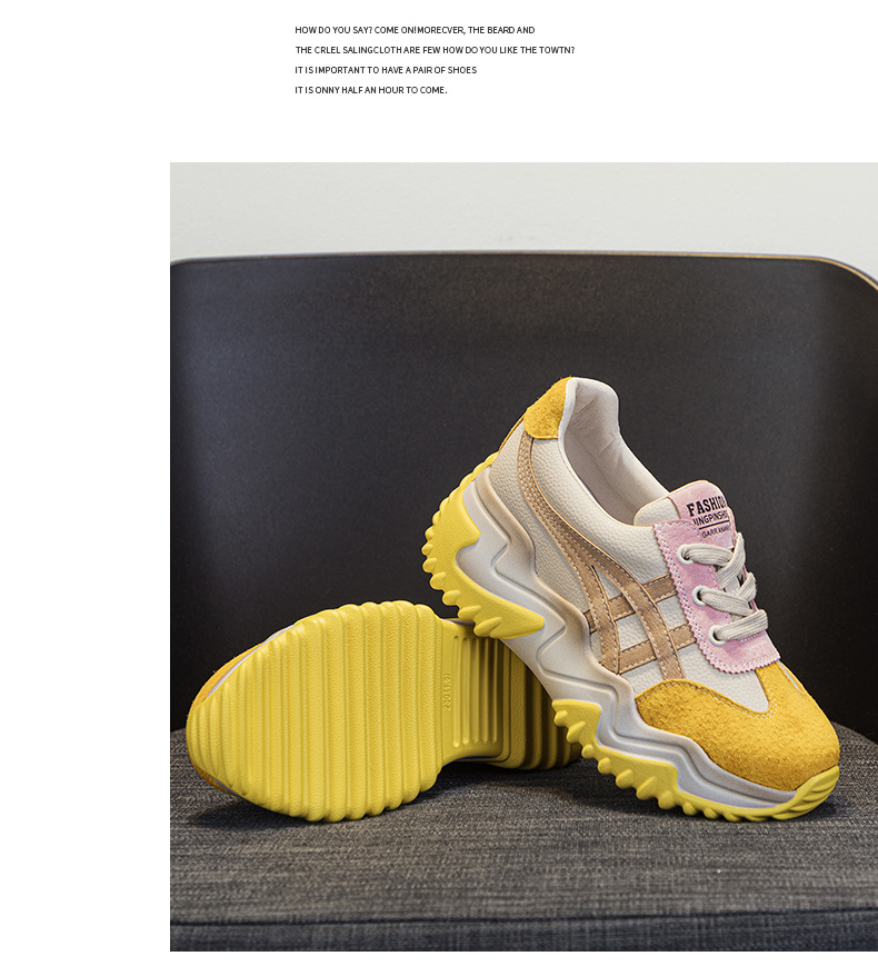 가을 2024 새로운 인테리어 높이 증가 가죽 캐주얼 아빠 신발 두꺼운 밑창 작은 흰색 신발 색상 일치 학생 신발 여성 신발스토어 가기