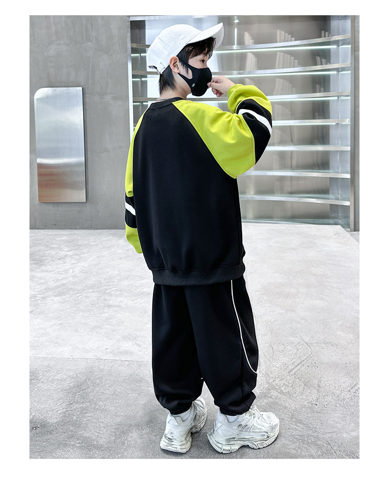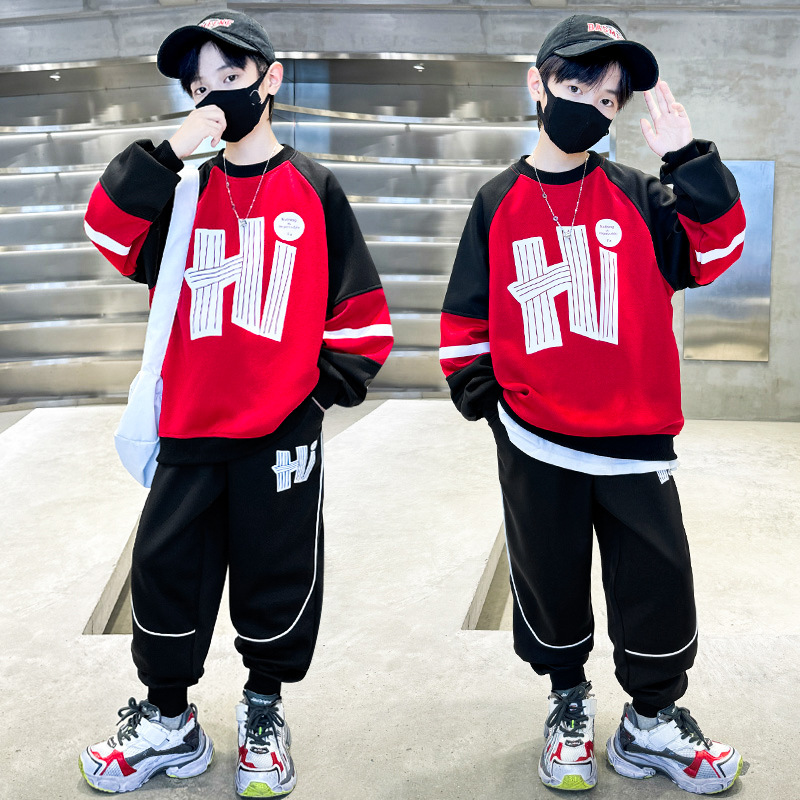 소년 세트 가을 2024 새로운 잘 생긴 큰 어린이 소년 ruffian 잘 생긴 스포츠 봄과 가을 스웨터 투피스 세트