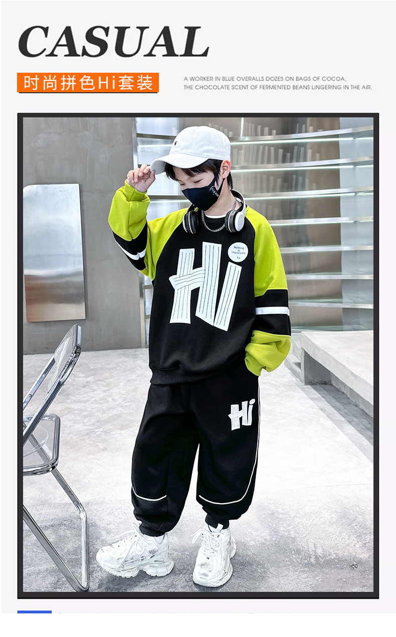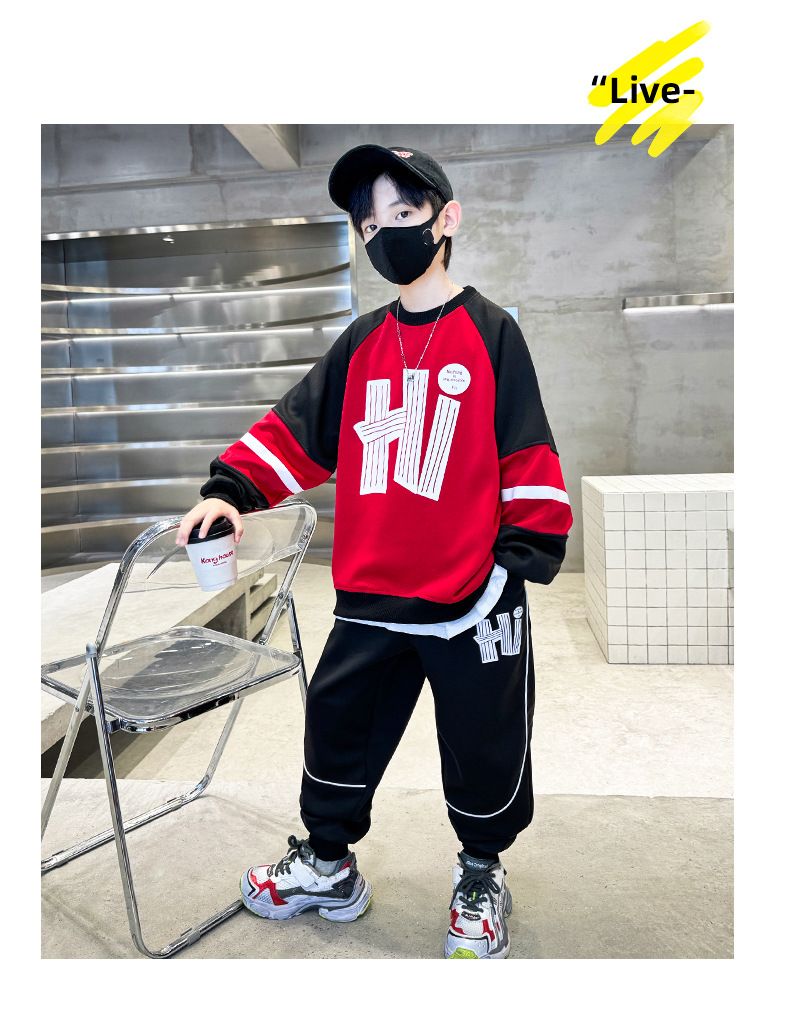 소년 세트 가을 2024 새로운 잘 생긴 큰 어린이 소년 ruffian 잘 생긴 스포츠 봄과 가을 스웨터 투피스 세트스토어 가기
