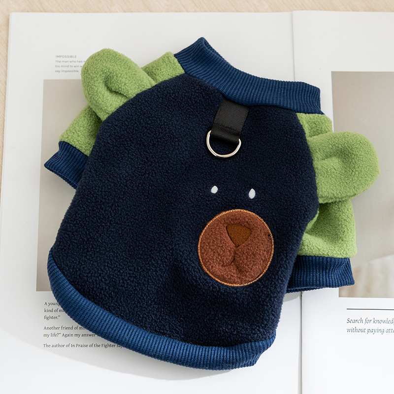 [가을과 겨울 애완 동물 옷 예약 구매 24 년] 곰 입체 귀 만화 벨벳 고양이 애완 동물 두 다리 개 옷스토어 가기