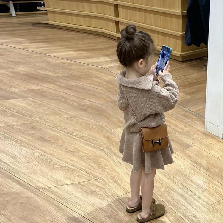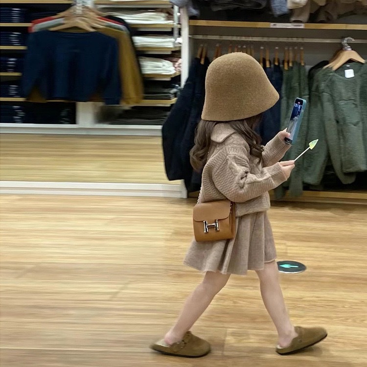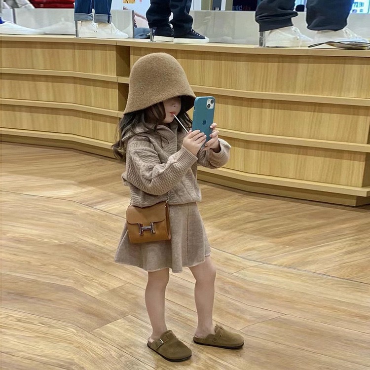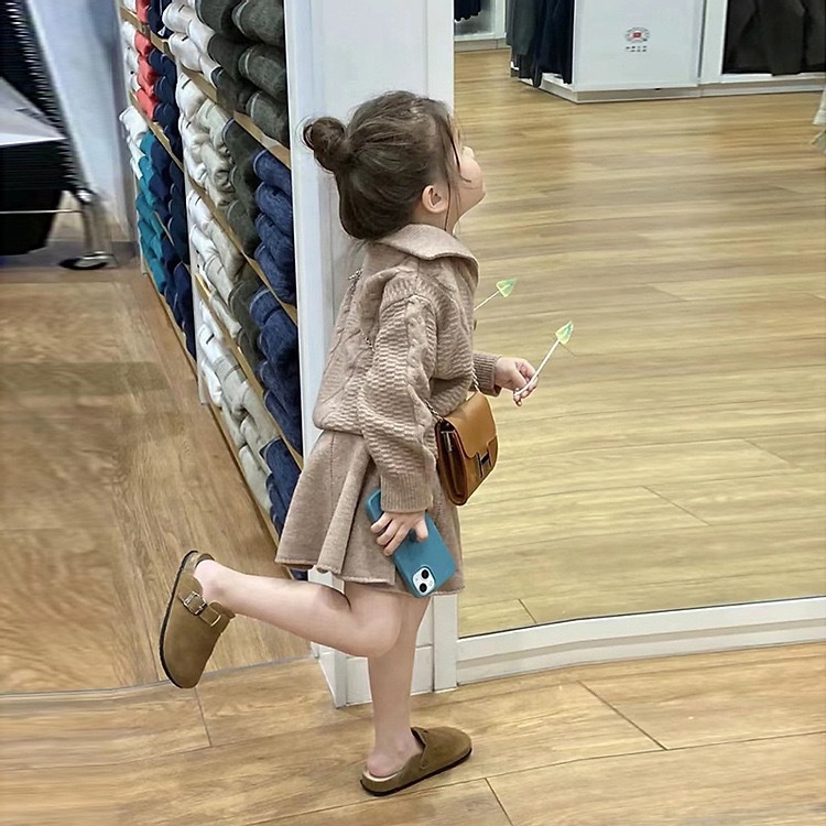 한국 아동복 2024 소녀 가을과 겨울 빈티지 셔츠 스웨터 니트 두꺼운 울 코트 스커트 투피스 패션스토어 가기