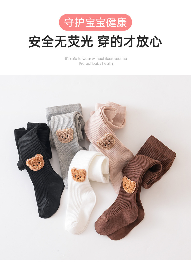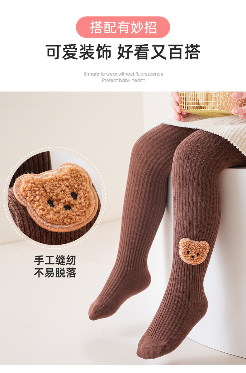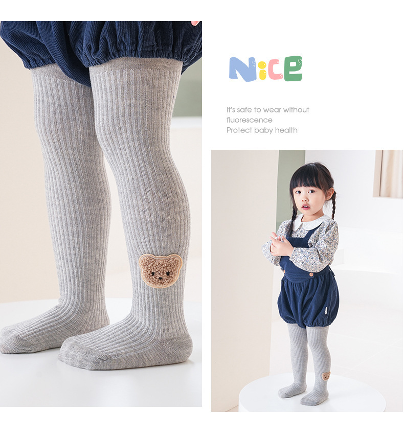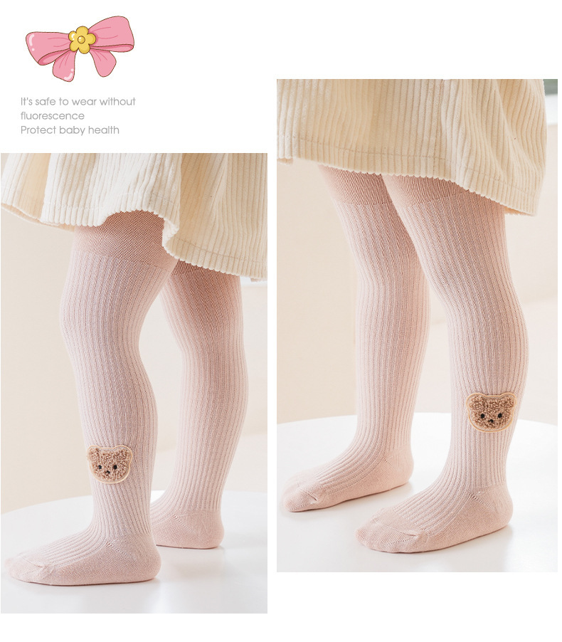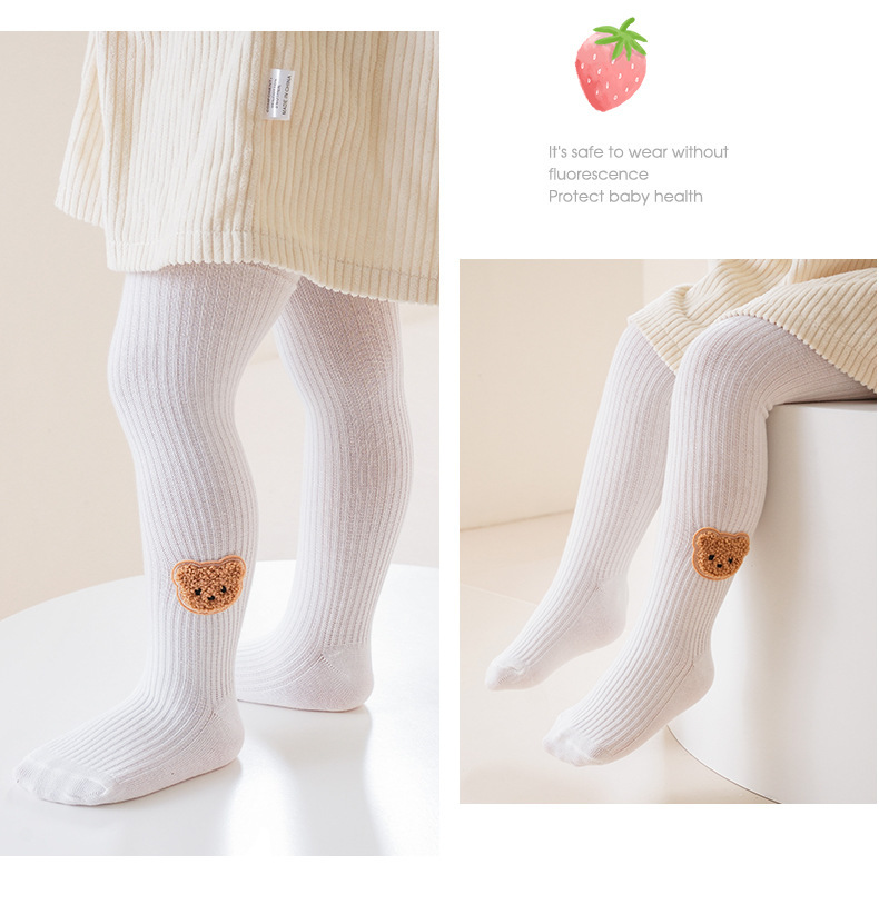 소녀의 봄과 가을 바닥 양말 만화 모직 베어 어린이 새 가을 화이트 팬티 스타킹 아기 소녀는 바지를 떨어 뜨리지 마십시오