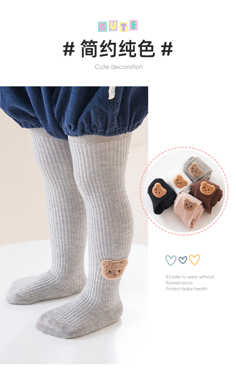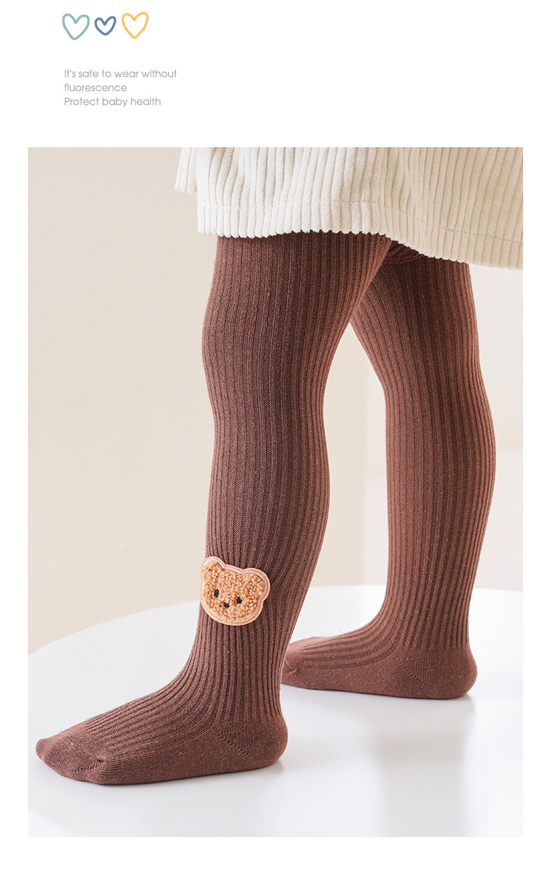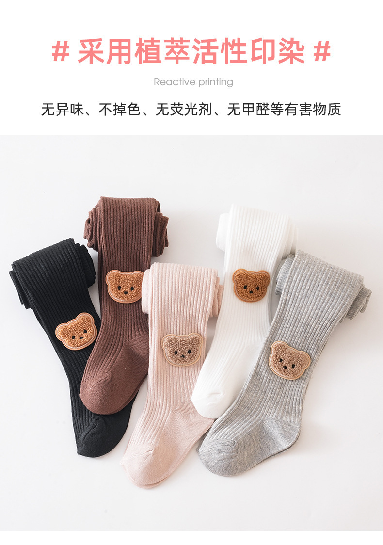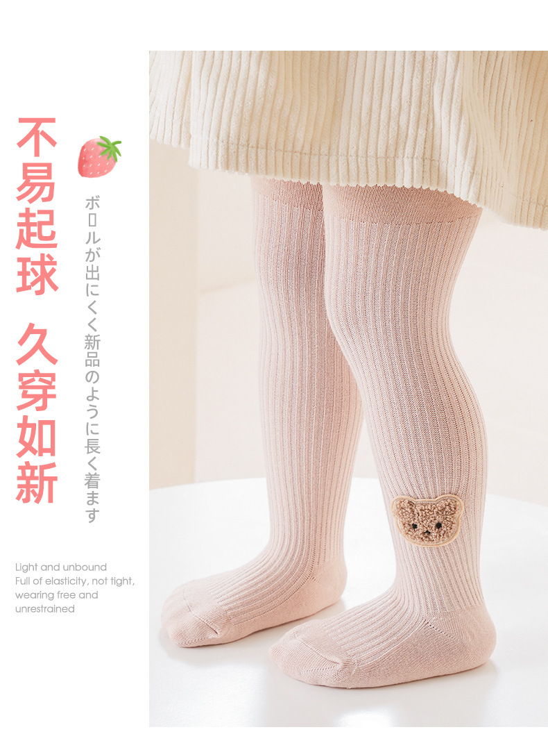 소녀의 봄과 가을 바닥 양말 만화 모직 베어 어린이 새 가을 화이트 팬티 스타킹 아기 소녀는 바지를 떨어 뜨리지 마십시오