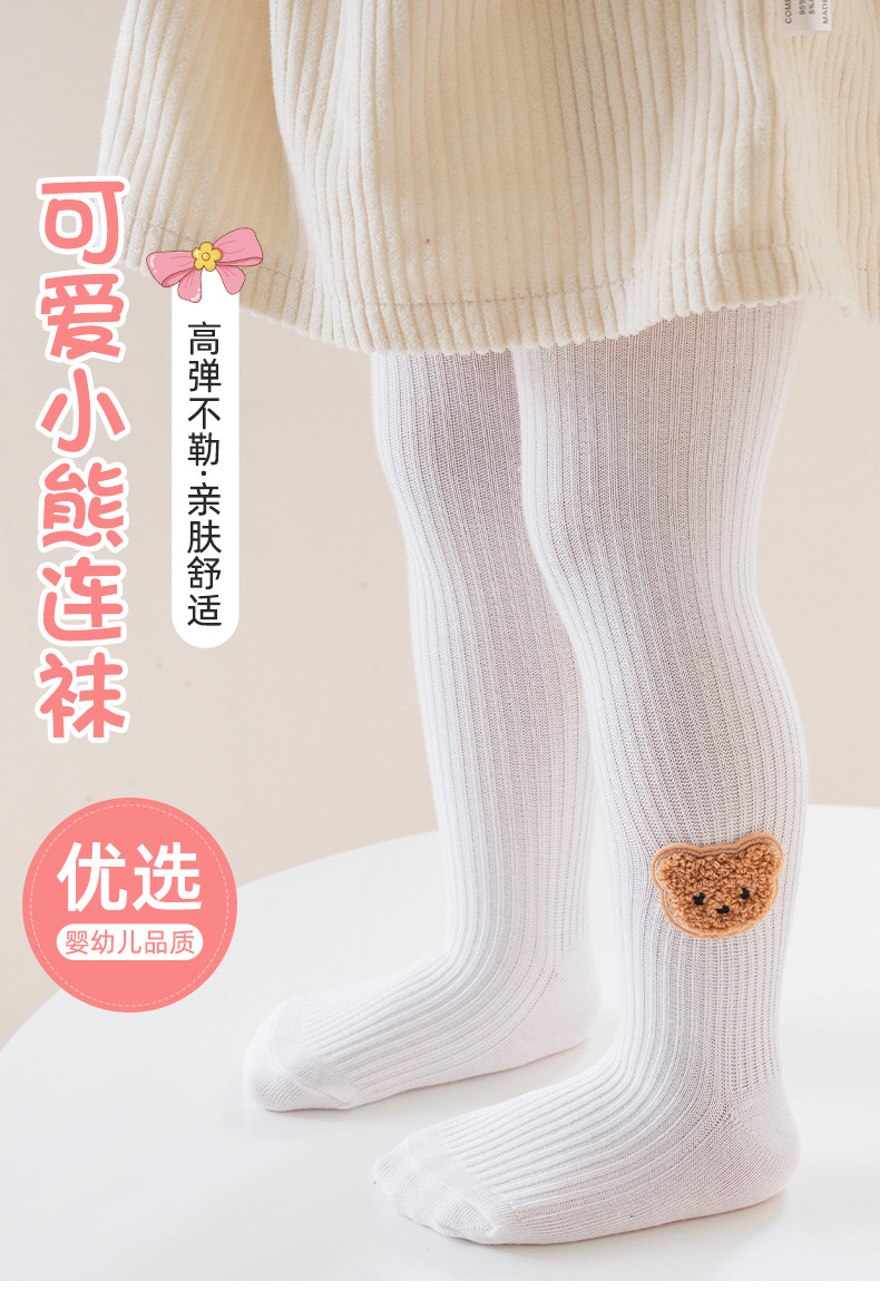 소녀의 봄과 가을 바닥 양말 만화 모직 베어 어린이 새 가을 화이트 팬티 스타킹 아기 소녀는 바지를 떨어 뜨리지 마십시오스토어 가기