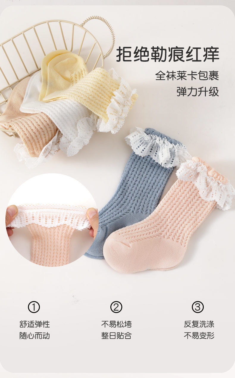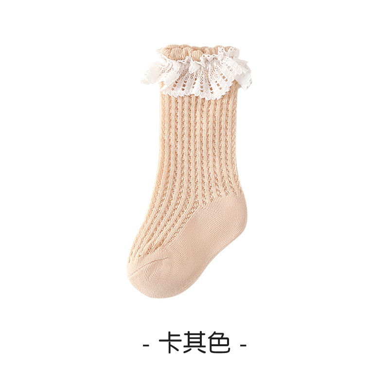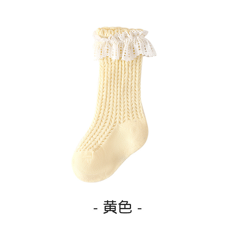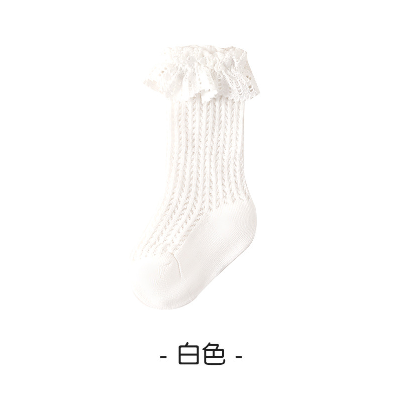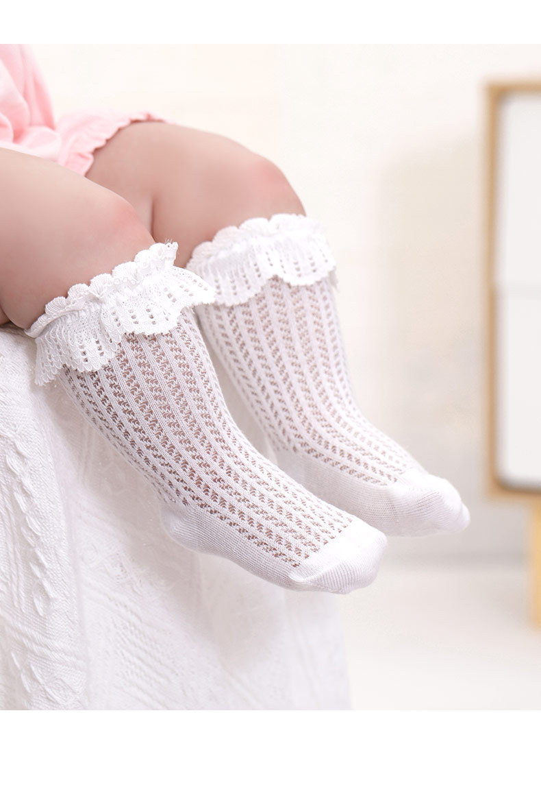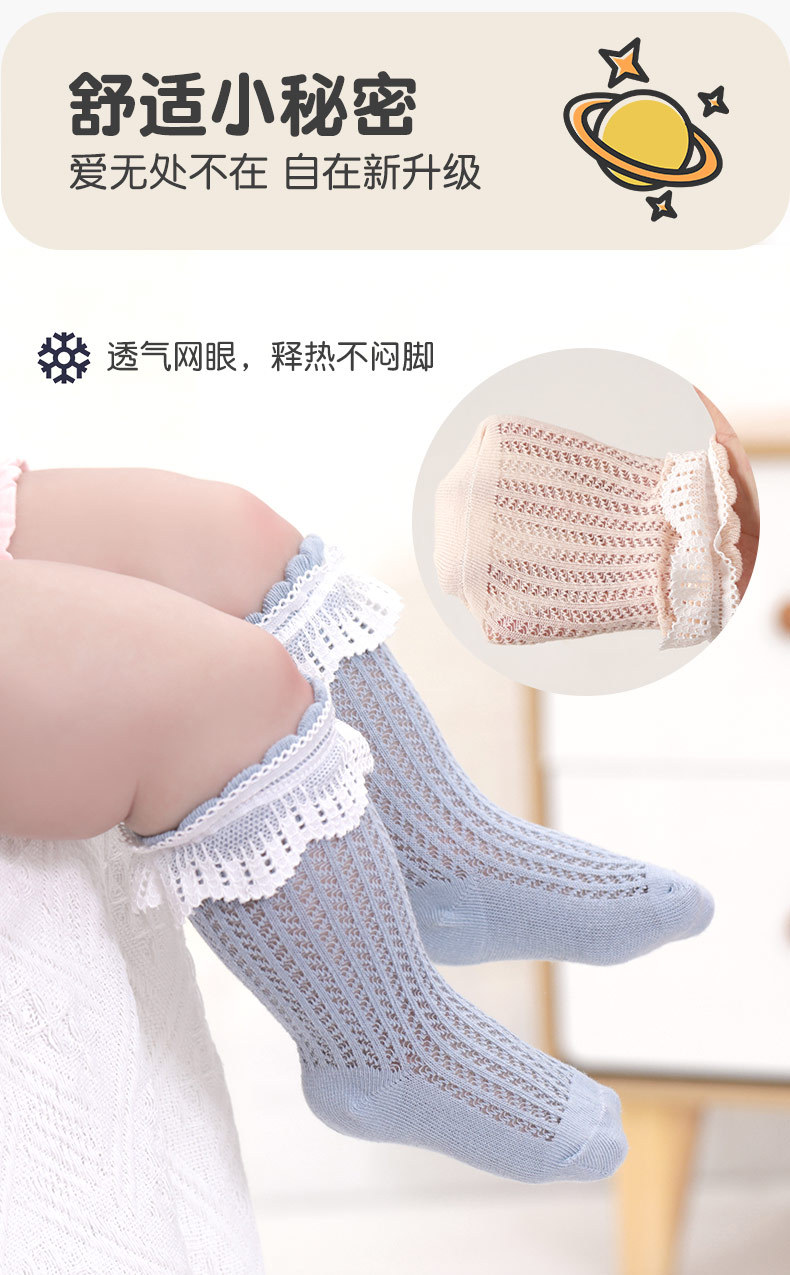여름과 가을 큰 메쉬 레이스 아기 양말 얇은 통기성 귀여운 공주 스타일 아기 면 양말 높은 튜브 어린이 양말